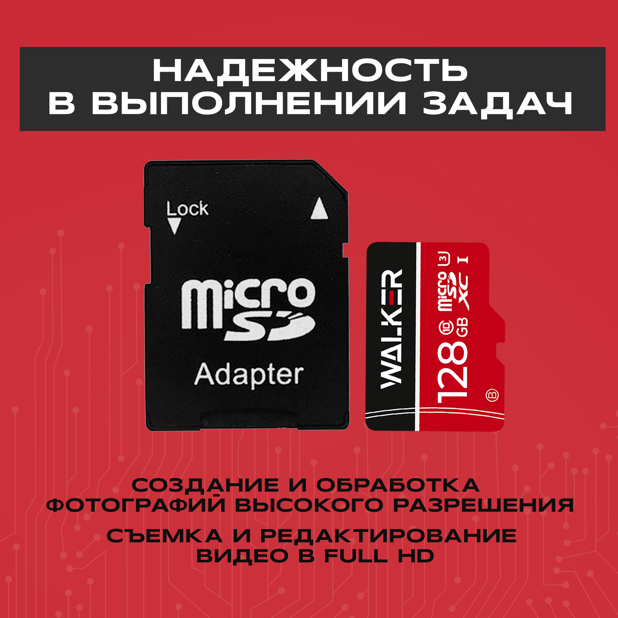 СохранитьКарта памяти 128 Gb MicroSD с адаптером, WALKER, флешка для телефона, ноутбука и видеорегистратора, внешние накопители информации, микро сд, черный интересное: