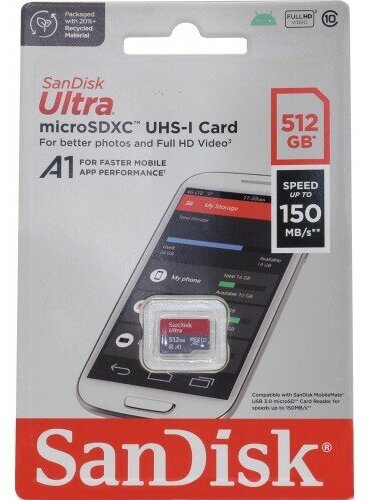 Карта памяти SanDisk microSDXC 512 ГБ Class 10, A1, UHS-I, R 150 МБ