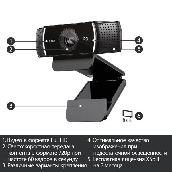 Камера-Web Logitech C922 Pro Stream black (2MP, 1920x1080, микрофон, USB 2.0) (960-001089) интересное: