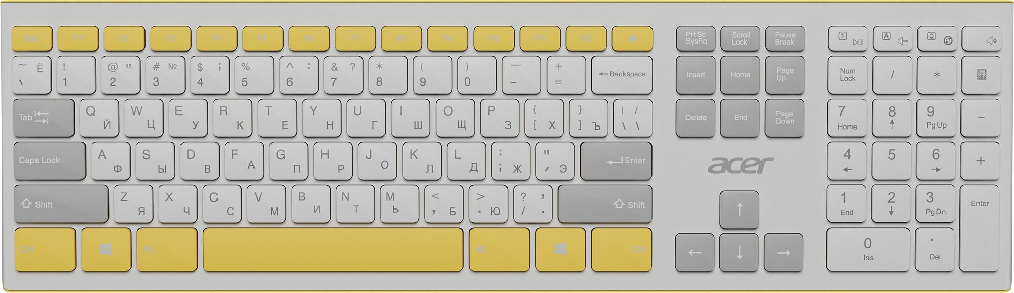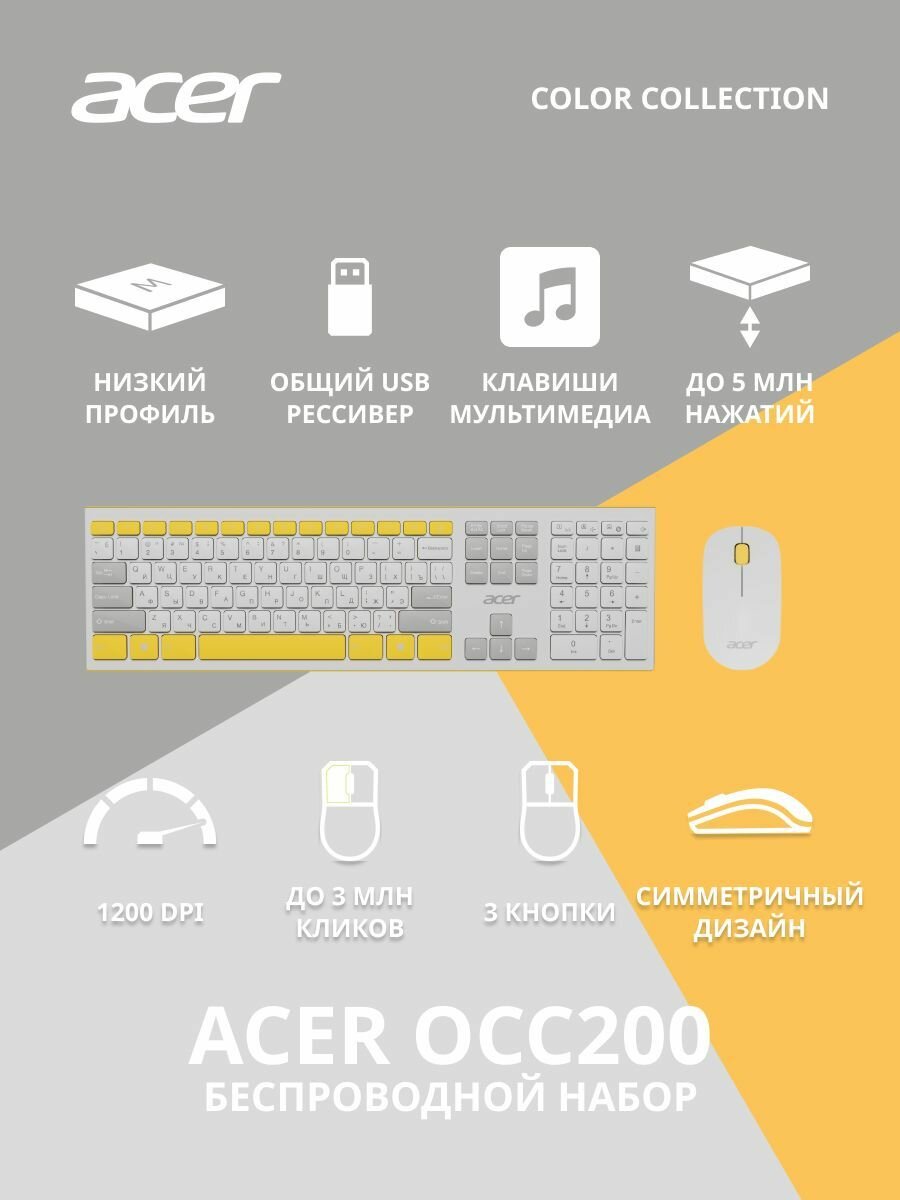 Клавиатура + мышь Acer OCC200 клав:желтый/белый мышь:белый/желтый USB беспроводная slim Multimedia (ZL.ACCEE.002)