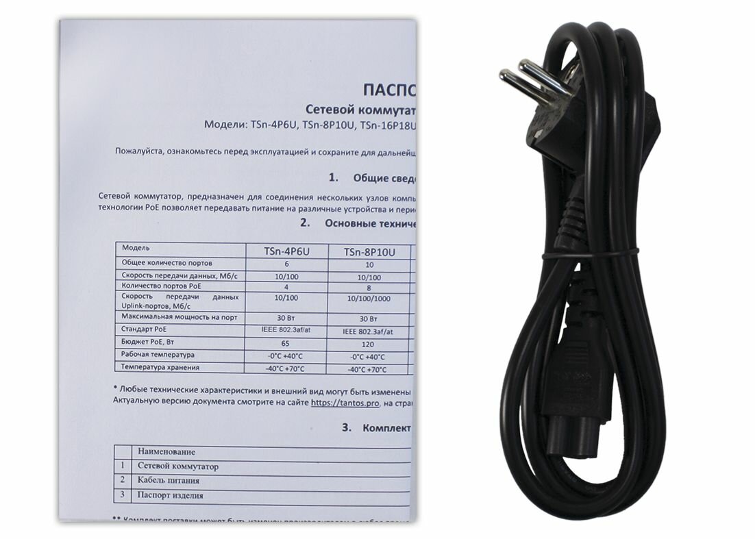 Коммутатор PoE TSn-4FP6F2 Tantos интересное: