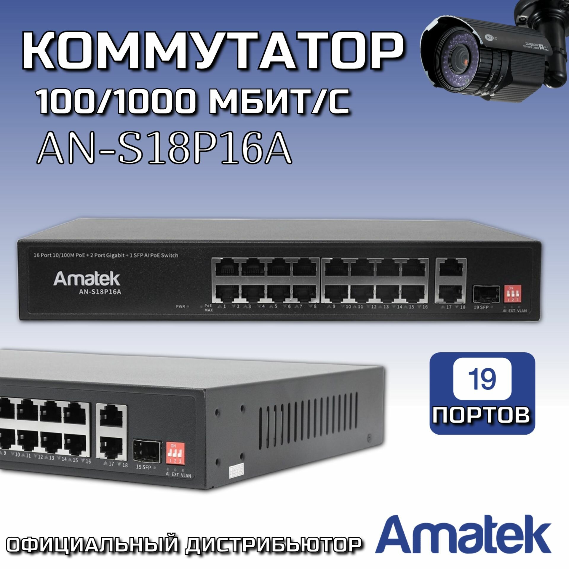 Коммутатор 19-портовый Amatek AN-S18P16A интересное: