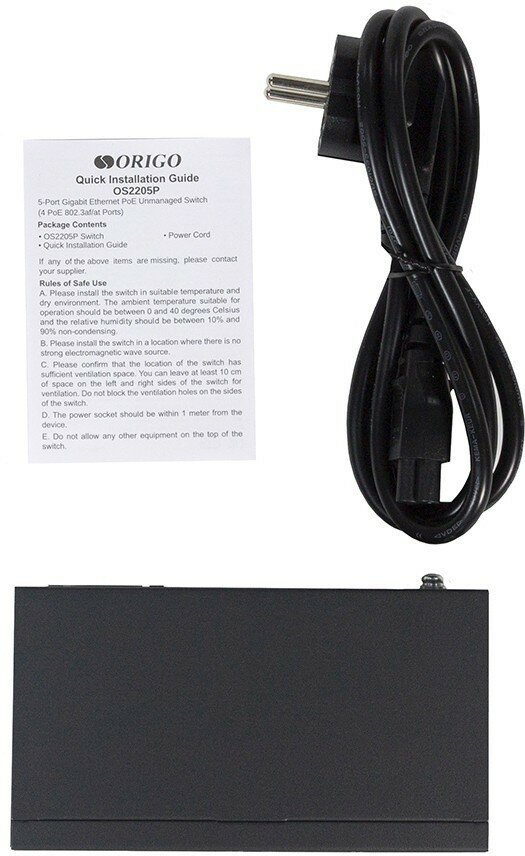 Коммутатор Origo OS2205P/60W/A1 Кол-во портов 5, Скорость портов 1000Мб/сек, Кол-во SFP-портов , Скорость SFP-портов Гбит/сек