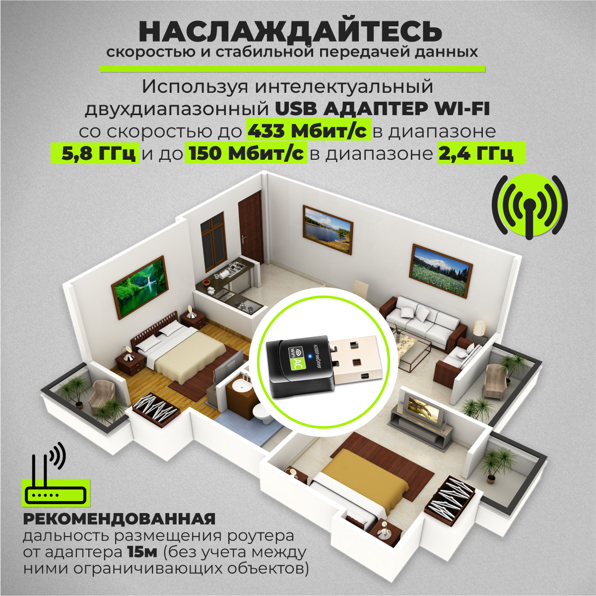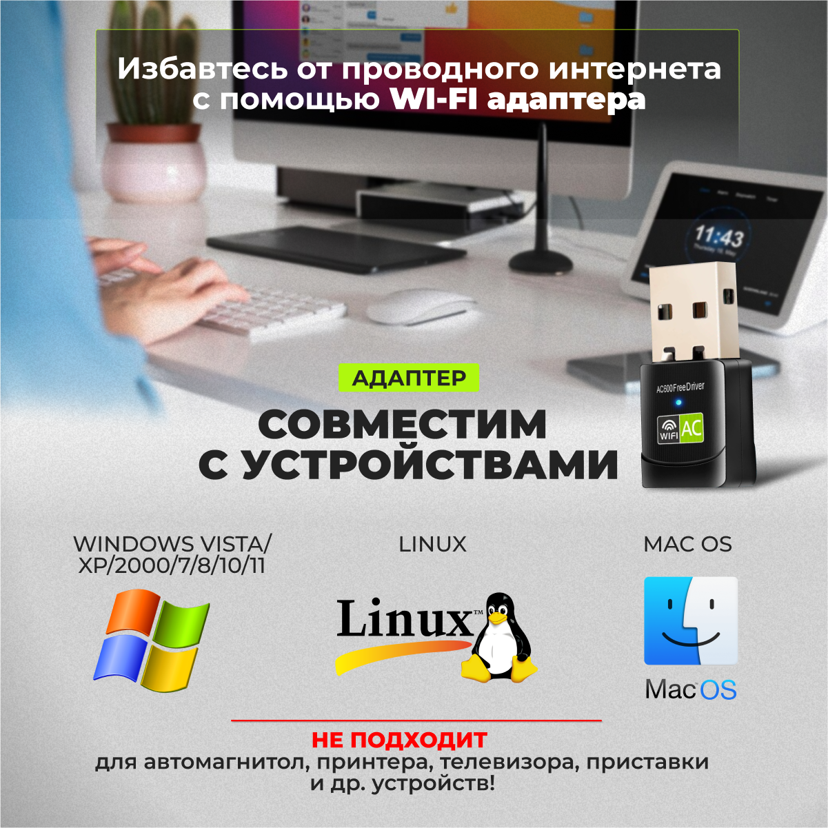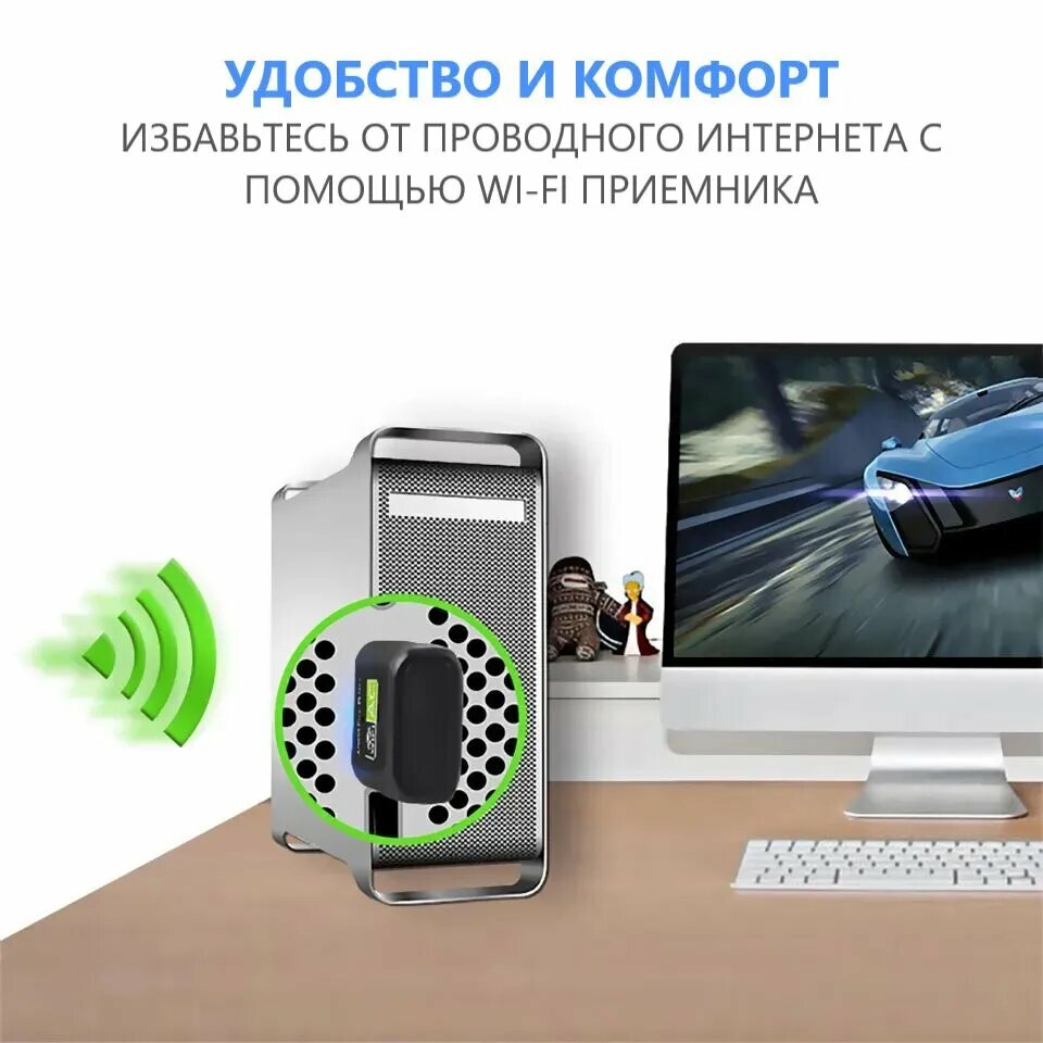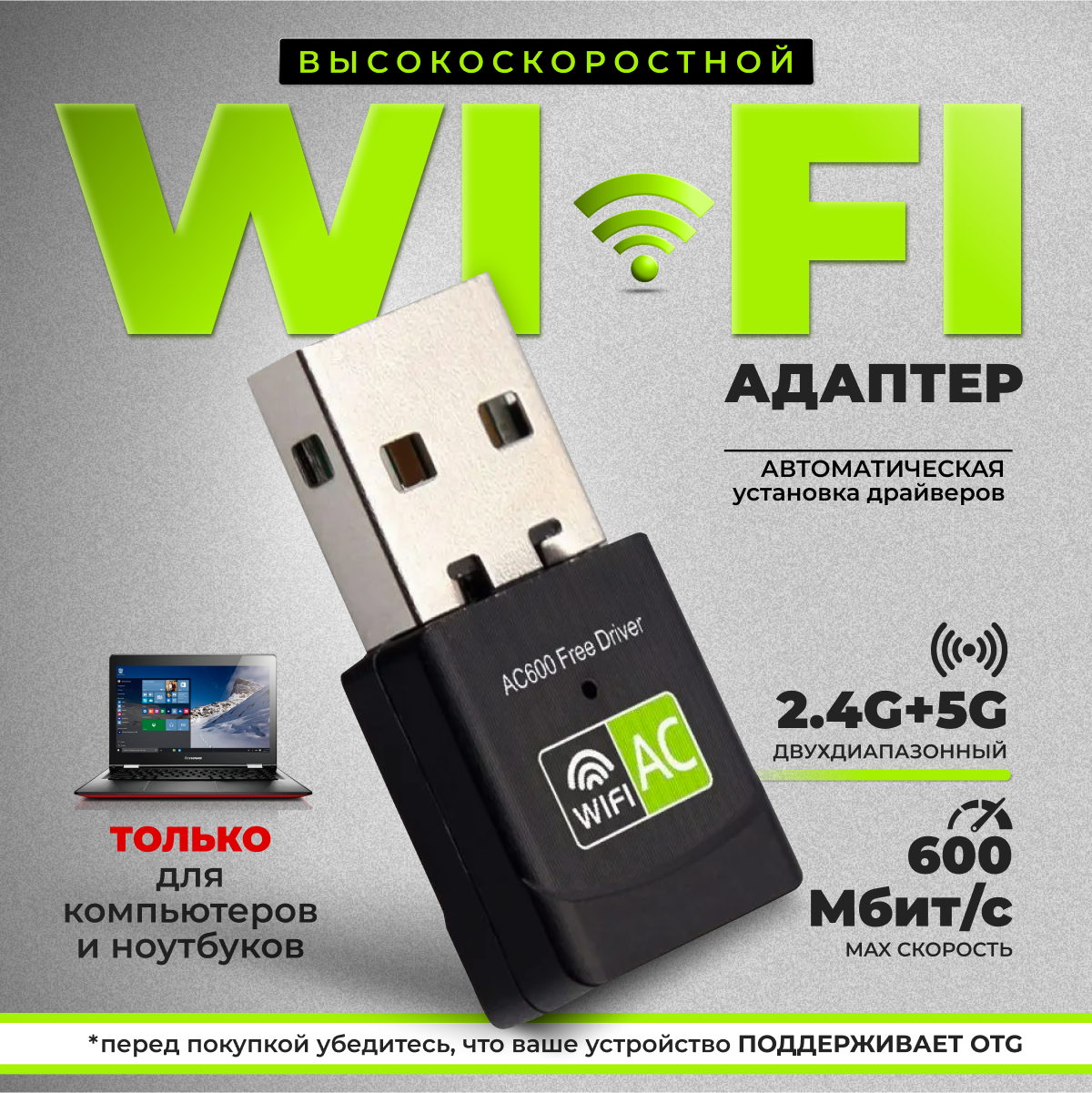 Адаптер USB Wi-Fi 600 Мбит/с, беспроводной приемник вайфай для компьютера, сетевая карта для пк, двух диапазонный 2.4 и 5 ГГЦ, черный интересное: