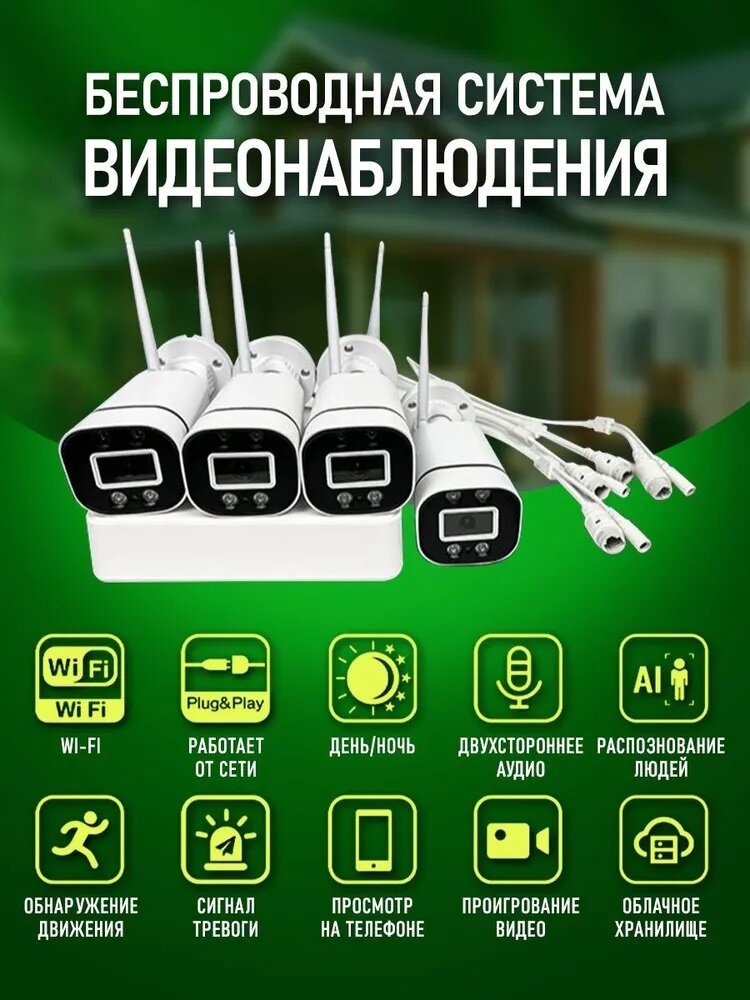 Купить Система видеонаблюдение(Готовые комплект ) онлайн для дома ,видеокамеры 4 WiFi камеры 5G