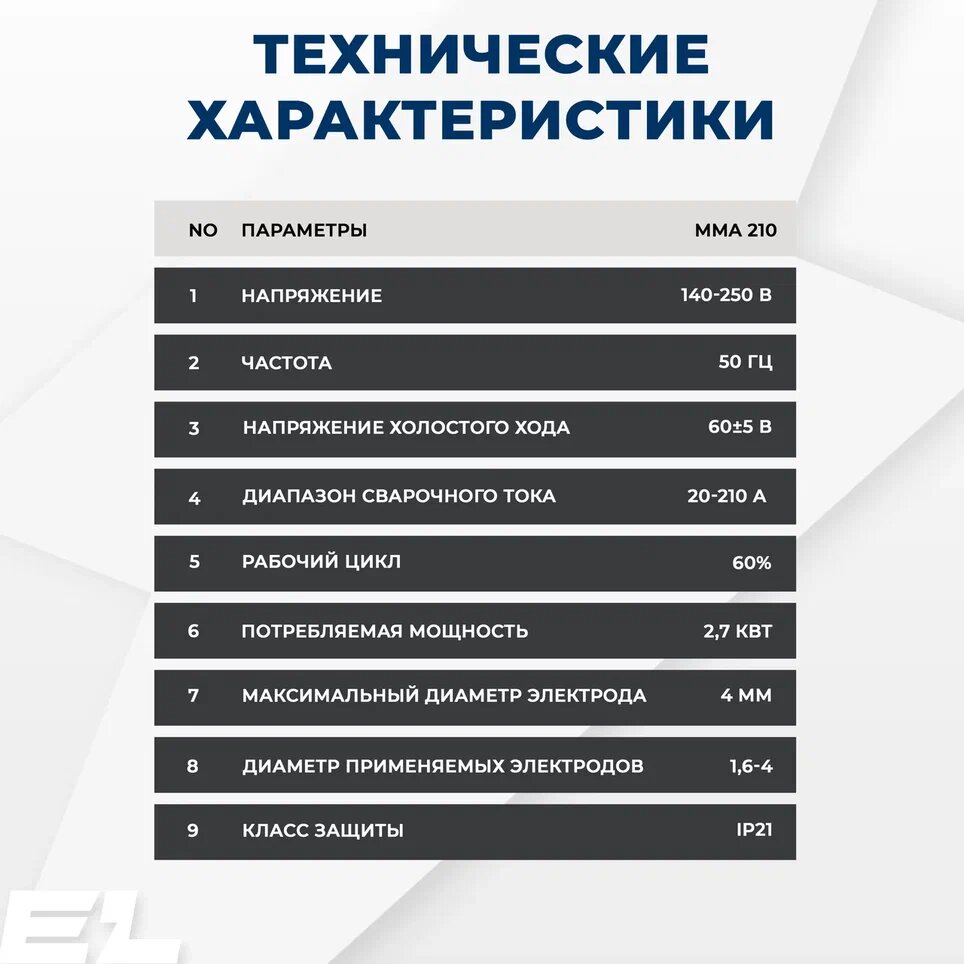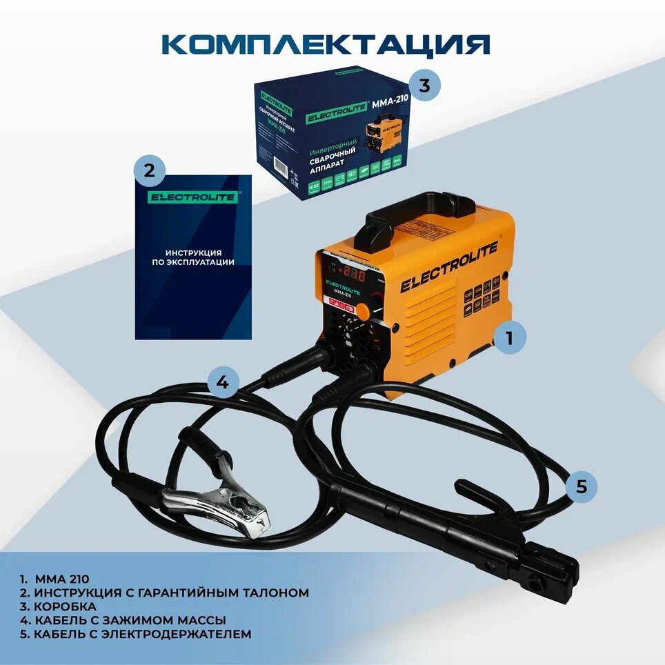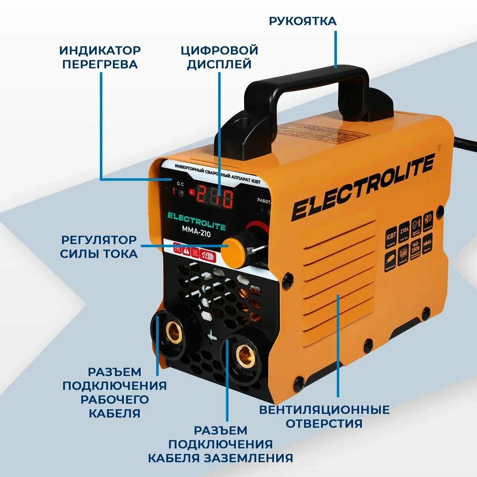 Инверторный сварочный аппарат / инвертор ELECTROLITE MMA-210 ( 210А, 140-250 В напряжение, 4 мм электрод, дисплей ) интересное: