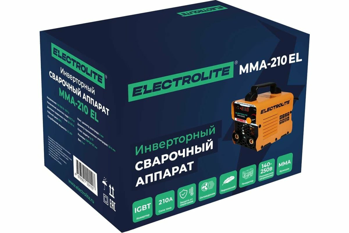 Купить Инверторный сварочный аппарат / инвертор ELECTROLITE MMA-210 ( 210А, 140-250 В напряжение, 4 мм электрод, дисплей )