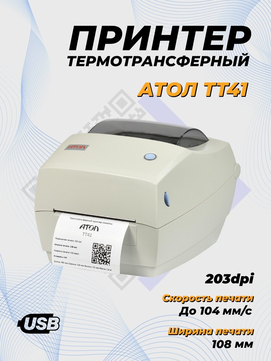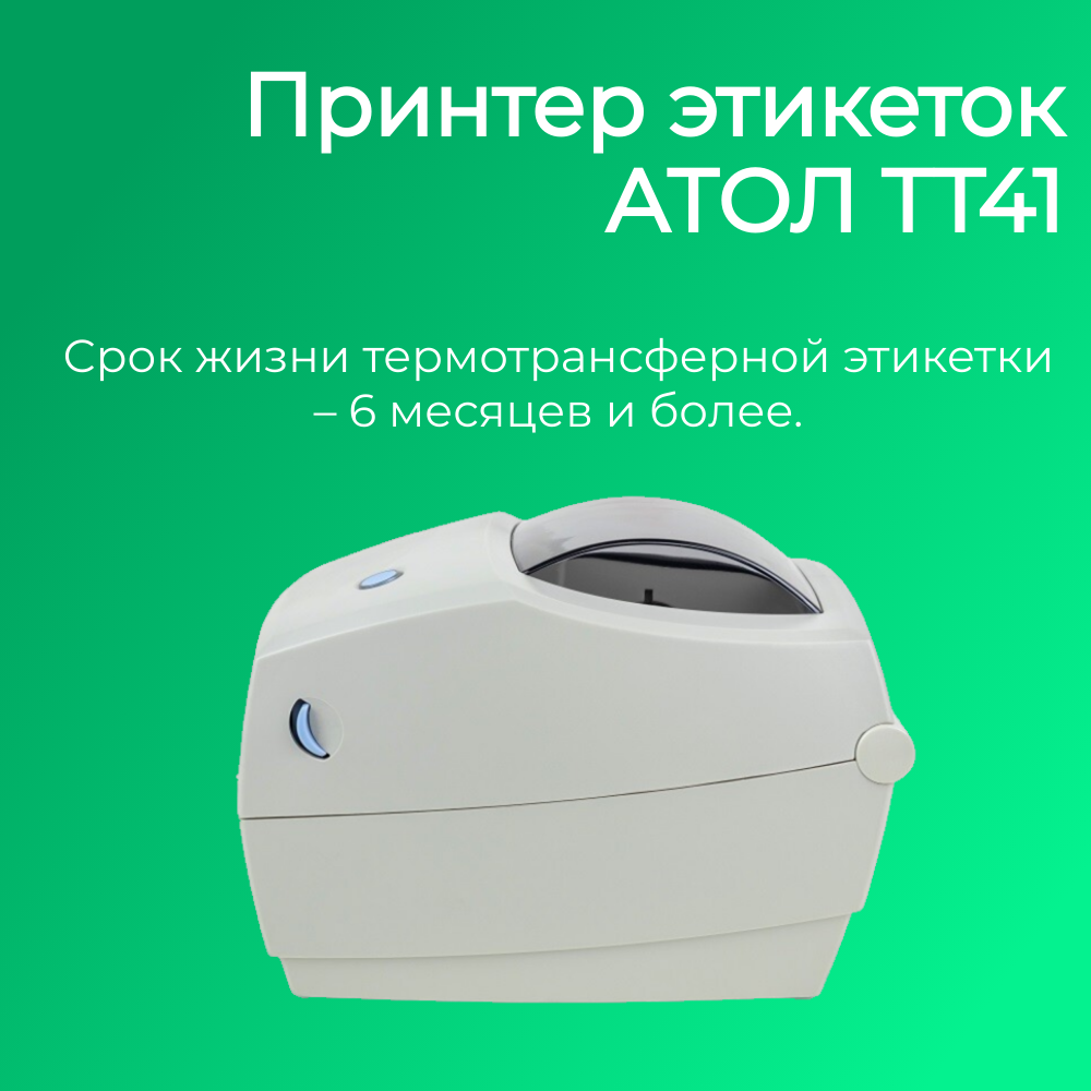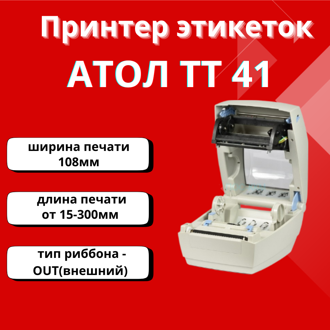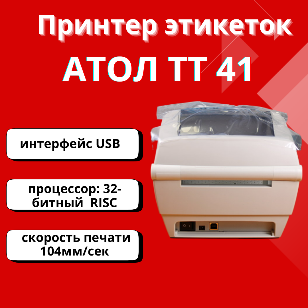 Принтер этикеток Атол ТТ41 (203dpi, термотрансферная печать, USB, ширина печати 108 мм, скорость 102 мм/с)