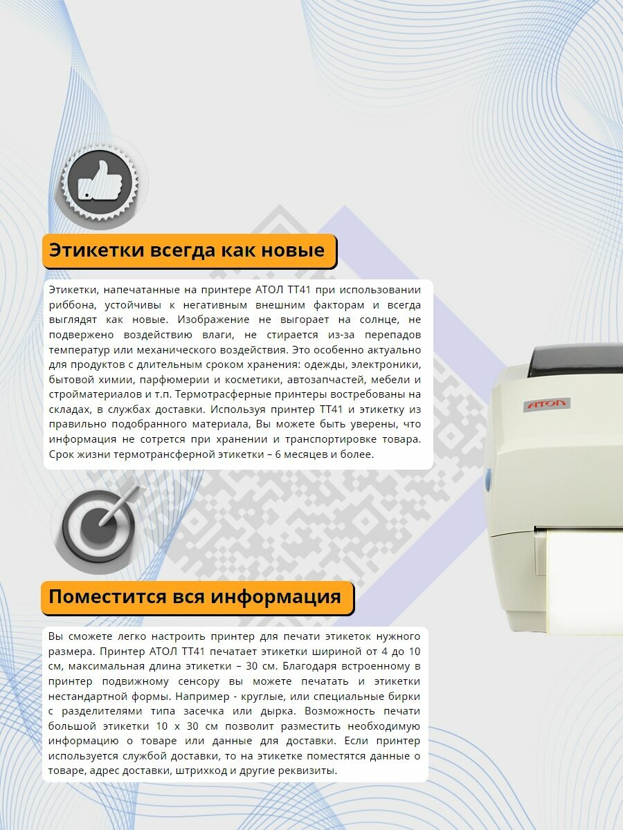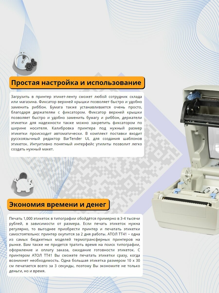 Термотрансферный принтер для печати штрих-кодов АТОЛ ТТ-41 интересное: