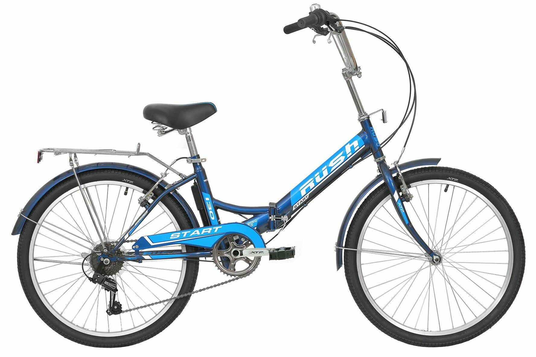 Велосипед складной 20" RUSH HOUR START 110 6 скоростей синий рама 13" рост 125-145 см. велик детский скоростной городской дорожный с багажноком вибрейк переключатель SHIMANO