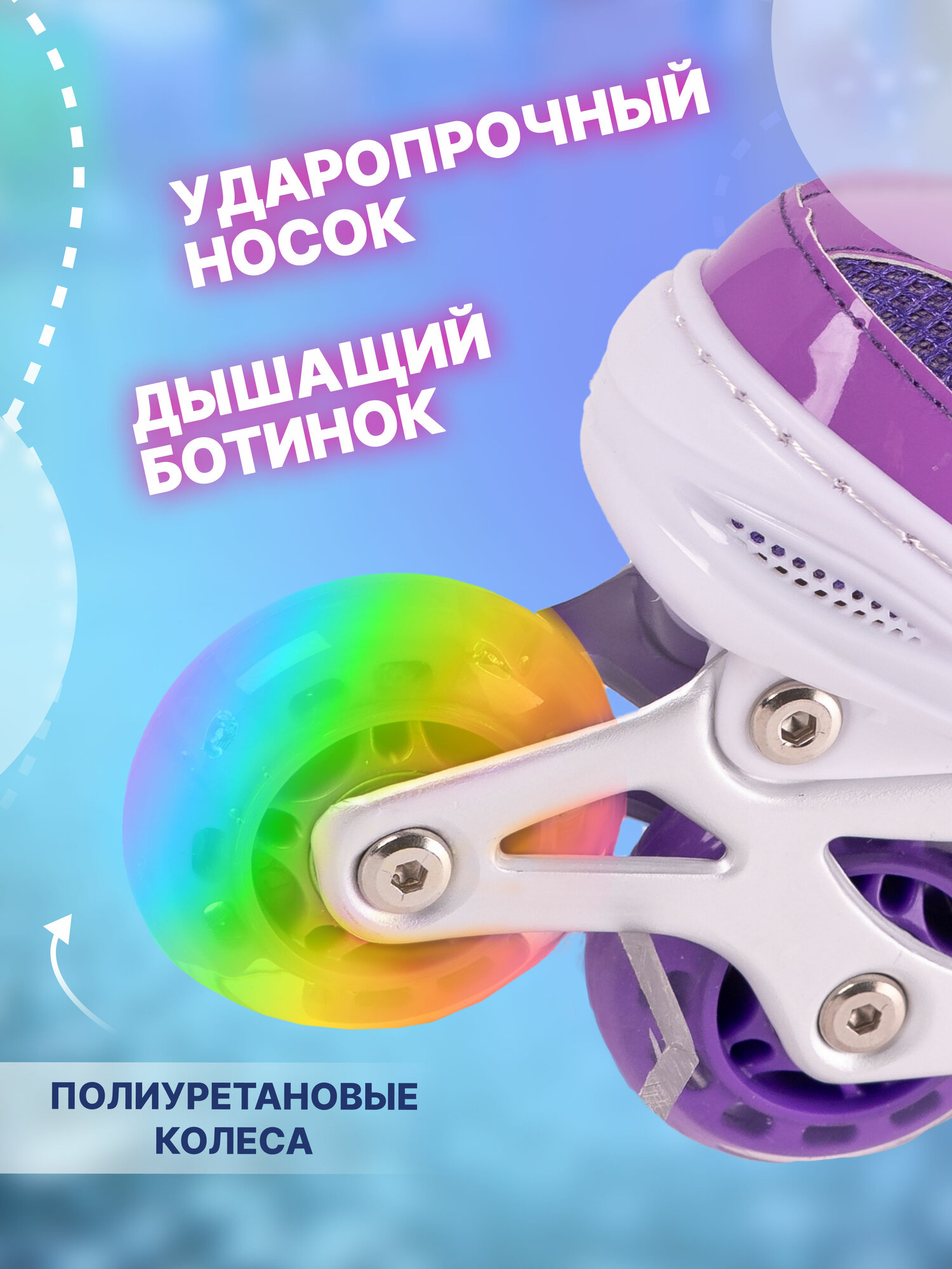 Ролики раздвижные с защитой детские, М (35-38) цвет фиолетовый