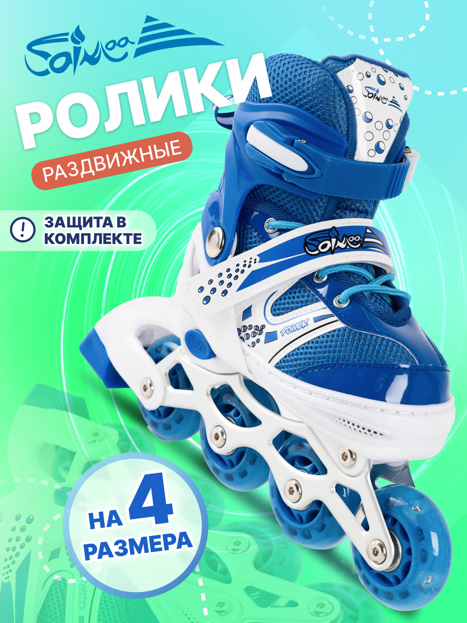 Купить Роликовые коньки с защитой раздвижные детские, S (31-34) цвет синий