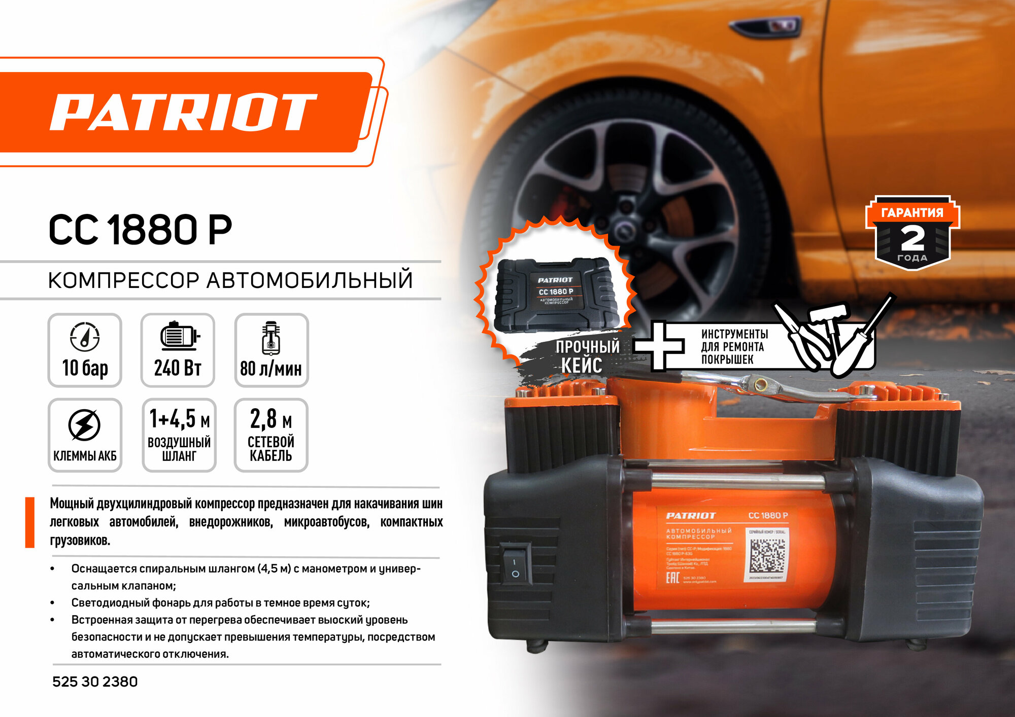 Компрессор автомобильный PATRIOT CC 1880 P (в кейсе) интересное: