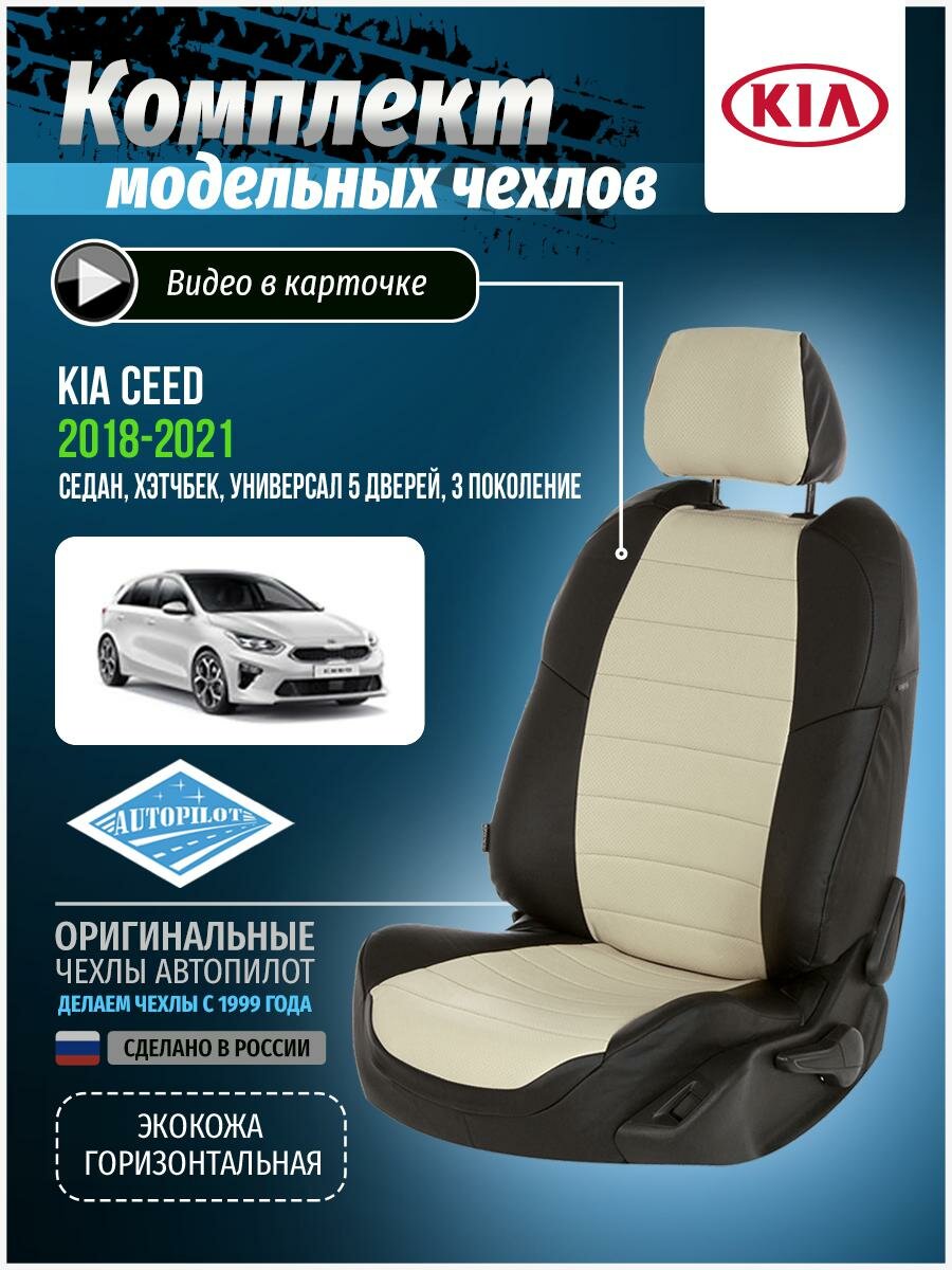 Чехлы на сиденья "АВТОПИЛОТ" из экокожи для KIA Ceed III с 18г. (три отдельных спинки) комплектация Prestige Черный, Темно-бежевый. ki-kciiipr-kcepre-chetb-e