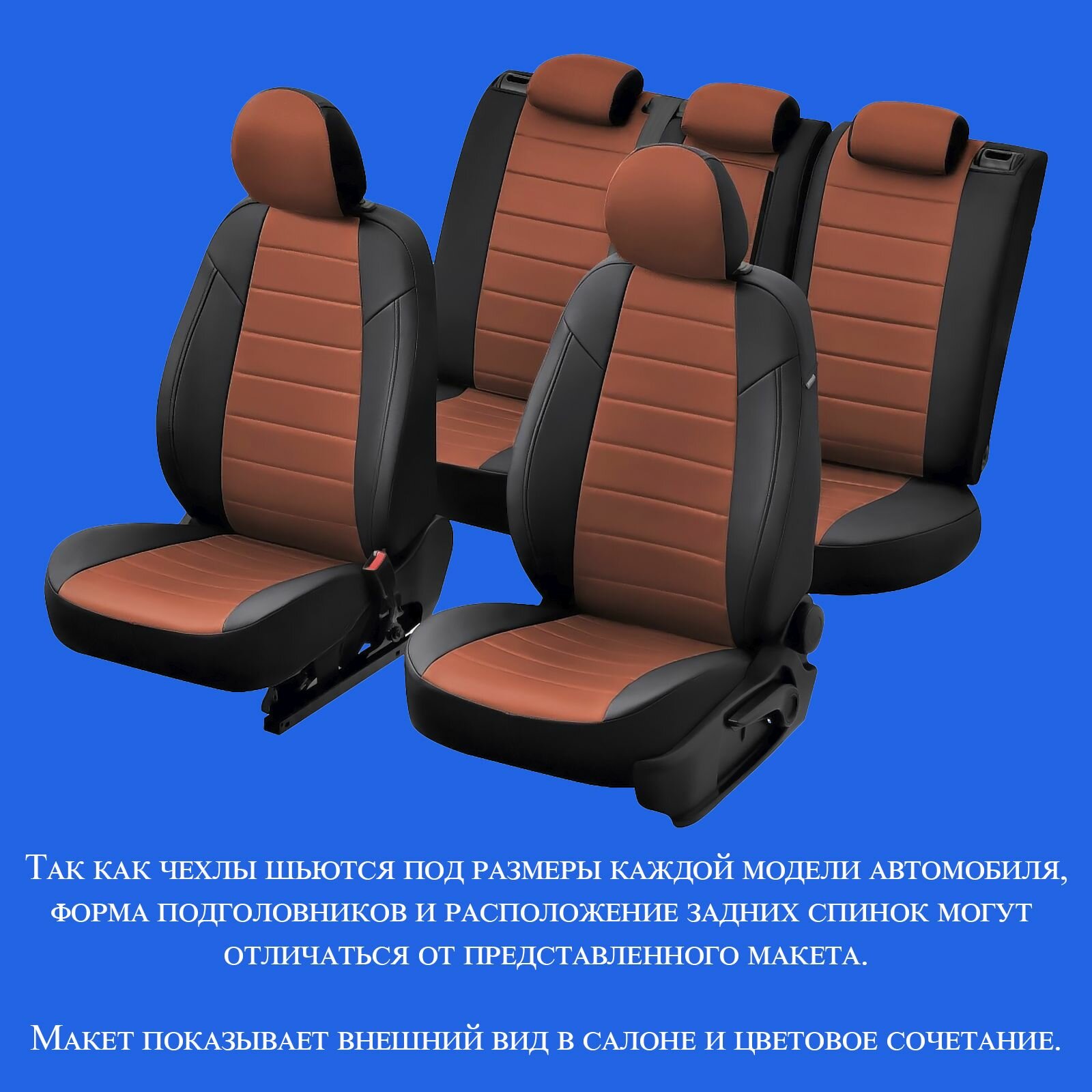 Комплект оригинальных чехлов на сиденья для Mitsubishi ASX с 10г. / Citroen C4 Aircross с 12-15г. / Peugeot 4008 с 12г. / Экокожа / Черный, Синий / mi-askh-askh10-chesi-e