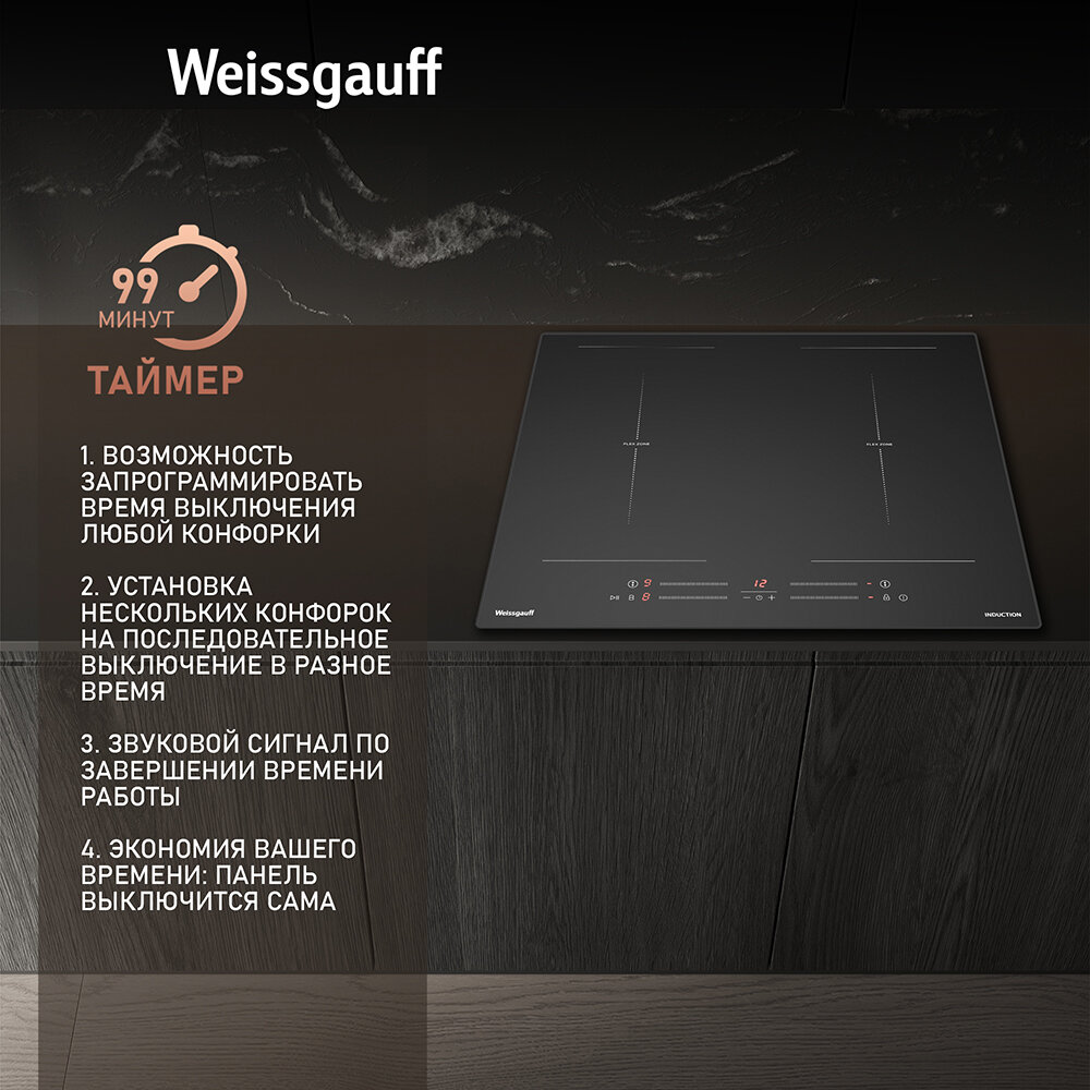 Индукционная варочная панель WEISSGAUFF HI 642 BSCM Dual Flex, независимая, черный