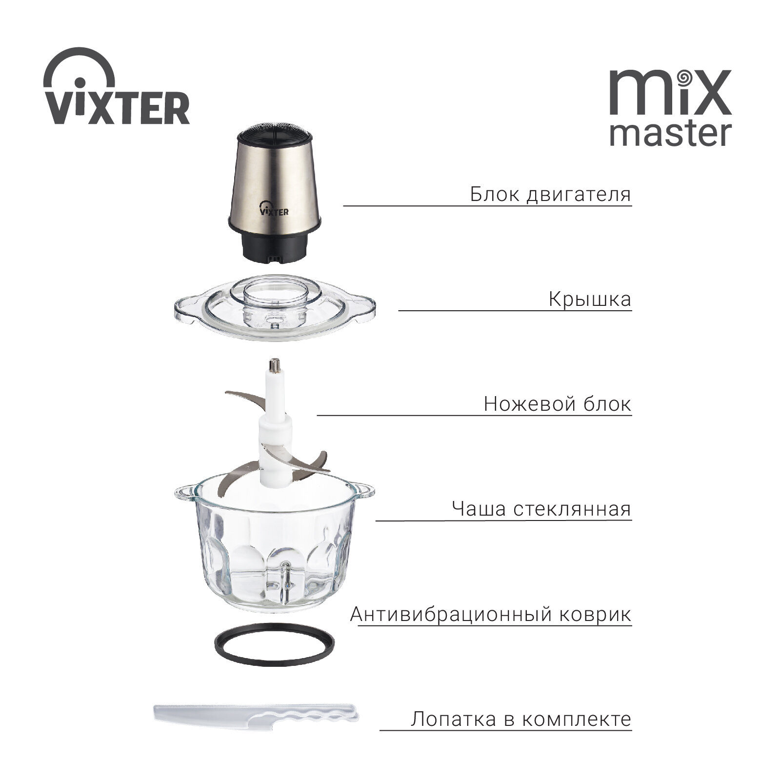 Измельчитель кухонный электрический VIXTER HCW-4060 стеклянная чаша, 2 литра, лопатка в комплекте
