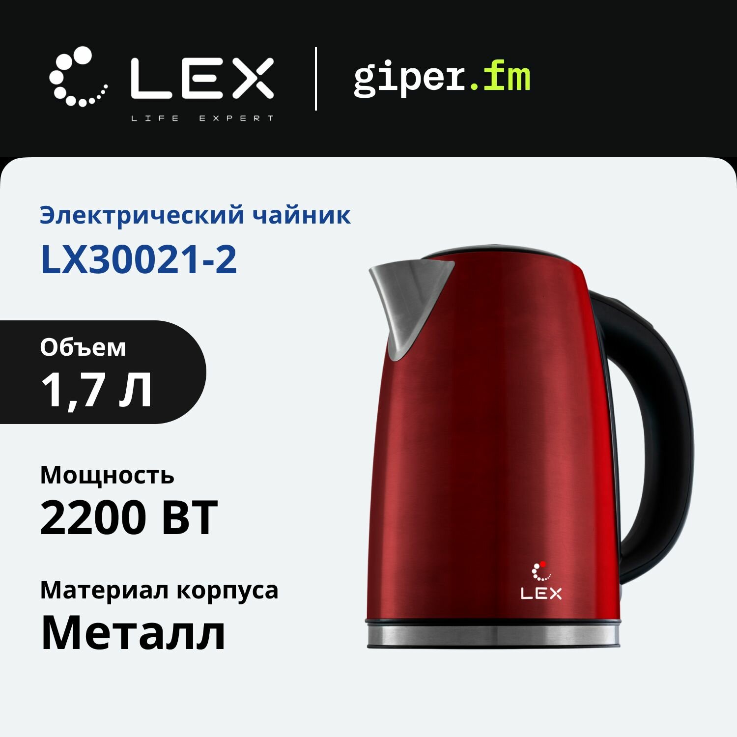 Чайник электрический металлический LEX LX 30021-2, 2200Вт, 1,7л, регулировка температуры, блокировка включения без воды, защита от перегрева.