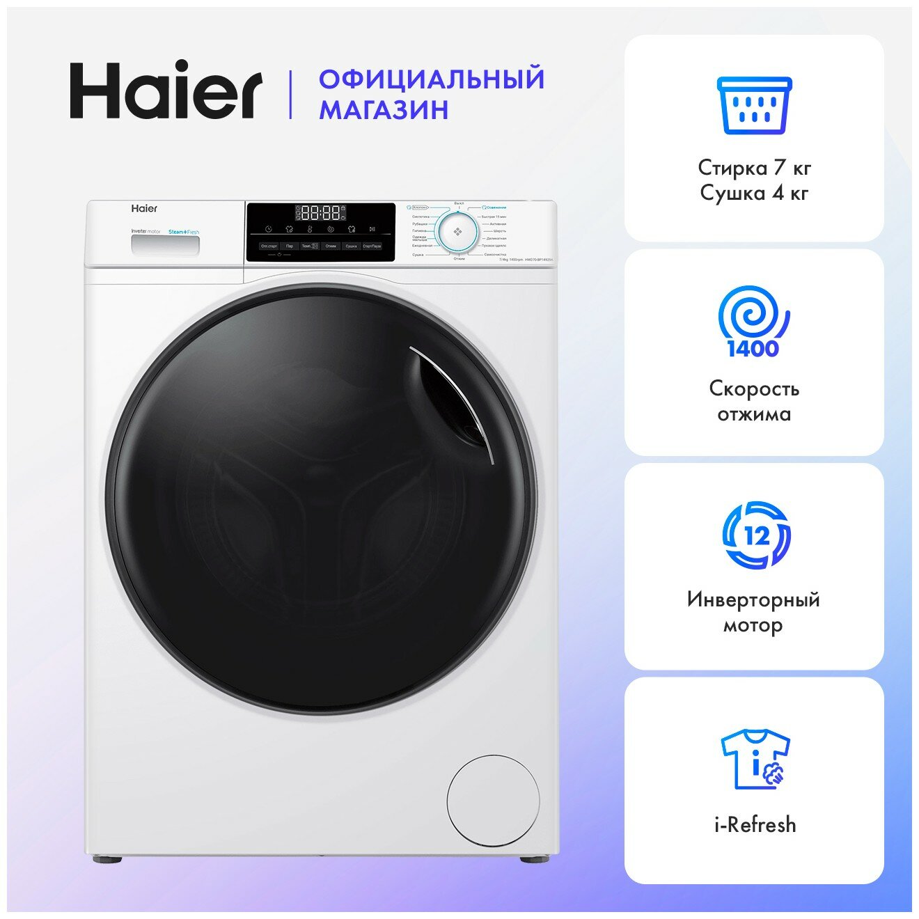 Стиральная машина с сушкой Haier HWD70-BP14929A интересное: