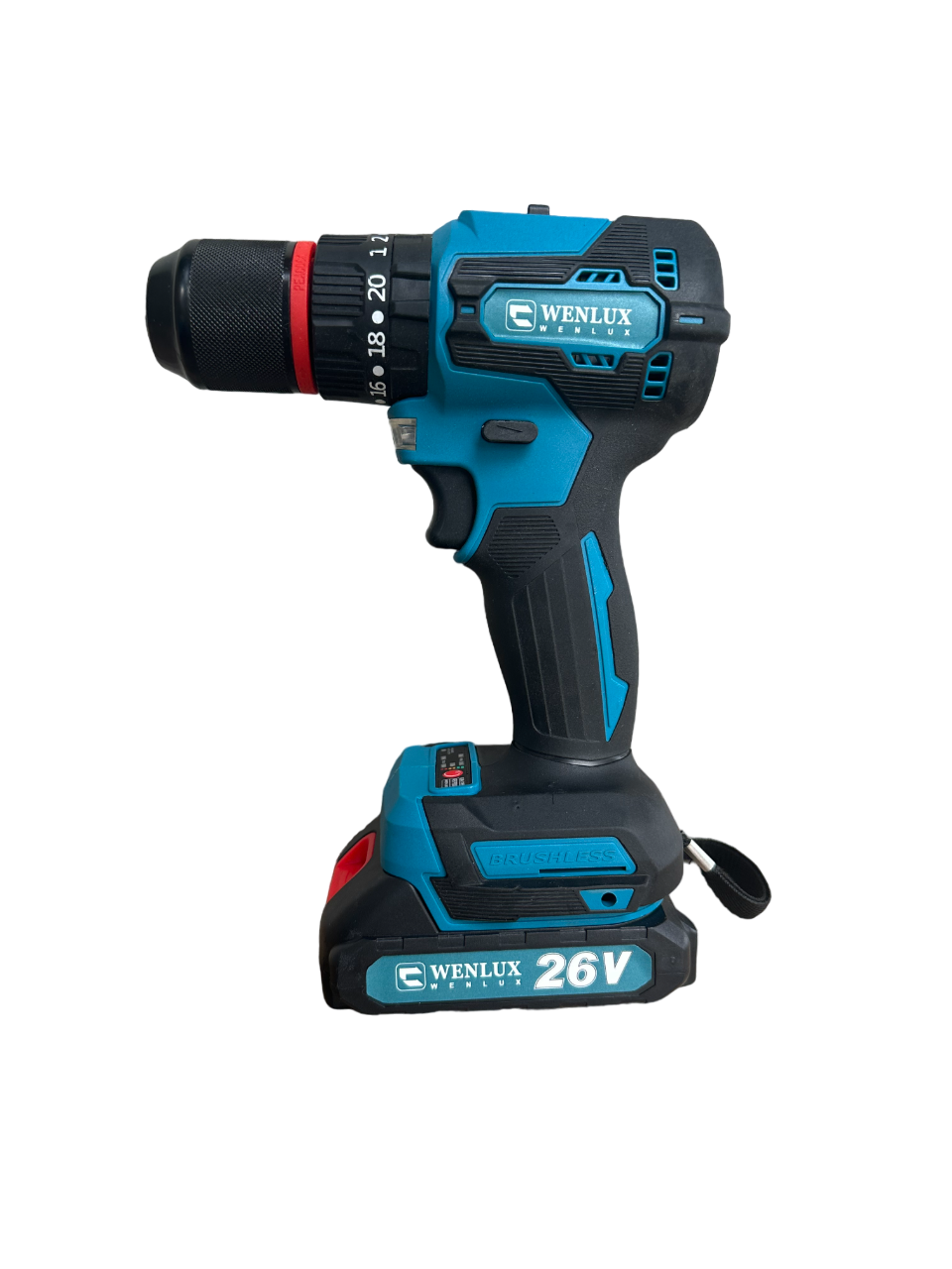 Дрель - шуруповерт акуумуляторный ударный 13мм - 1300AH - 26V WENLUX + набор аксессуаров интересное: