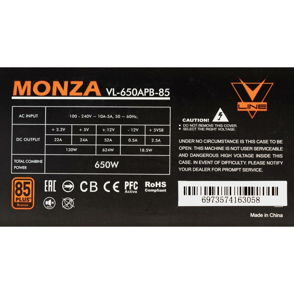 Блок питания Formula ATX 650W MONZA VL-650APB-85 80+ bronze (20+4pin) APFC 120mm fan SATA RTL