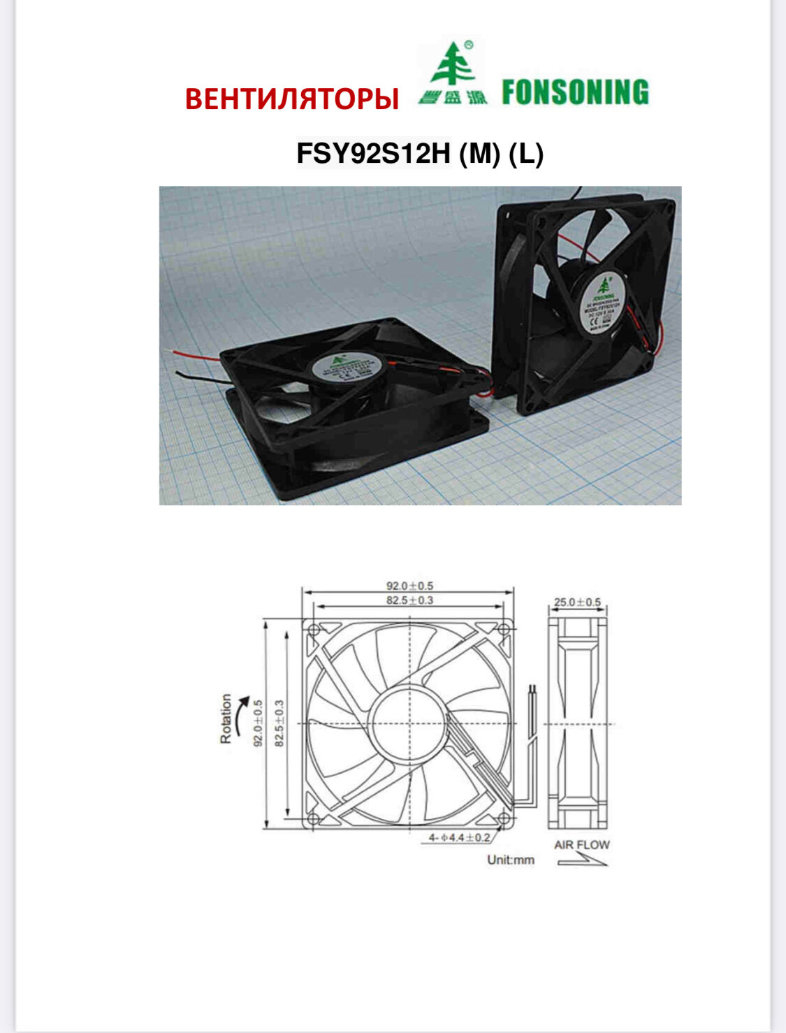 92х92х25мм, FSY92S12H, Вентилятор, Fonsoning, 12VDC, 0.3A электротовар интересное: