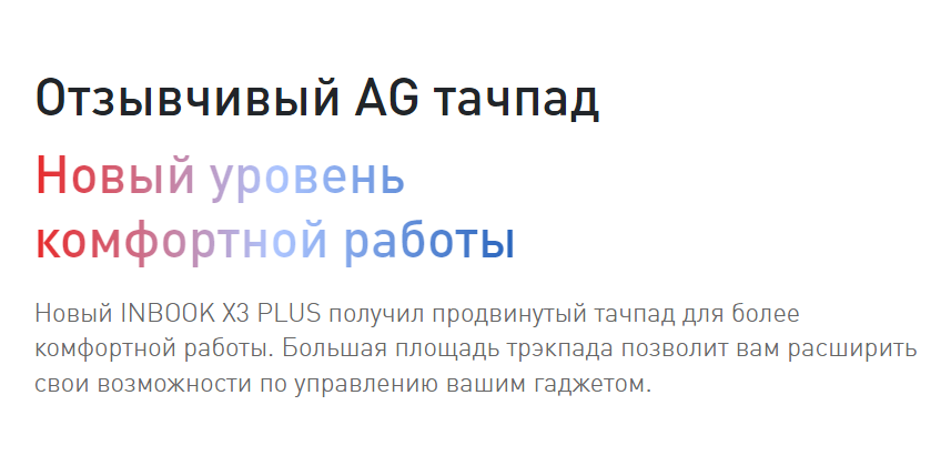 | Дополнительная информация | легкий металлический корпус, тактильная клавиатура Xtrike, умная точка доступа, функция "простая передача данных" (можно передать любой файл с INBOOK X3 PLUS на любой смартфон Infinix) |