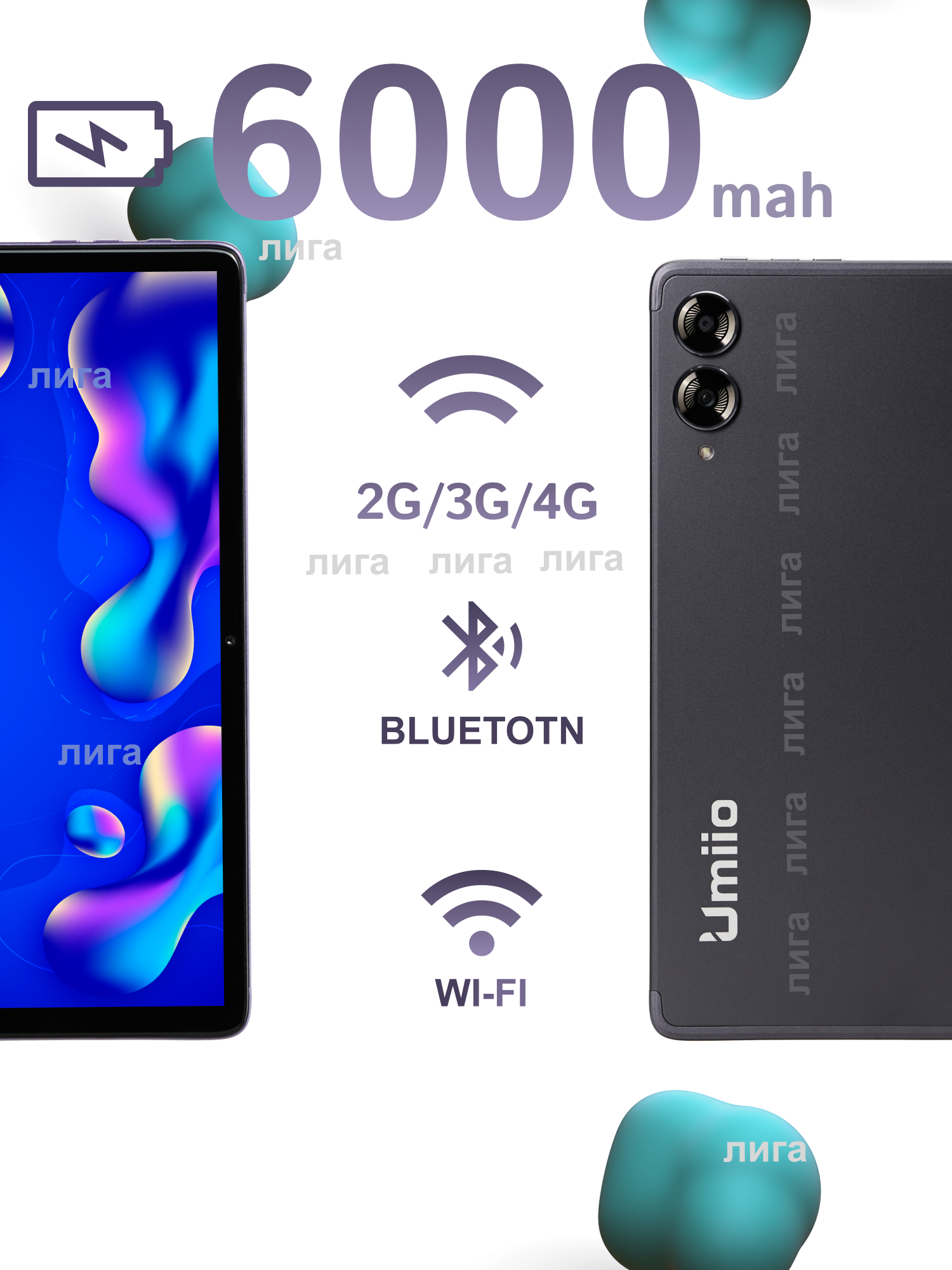 Планшет Umiio S9, 10,1" 6/128Gb, Android 12, Фиолетовый