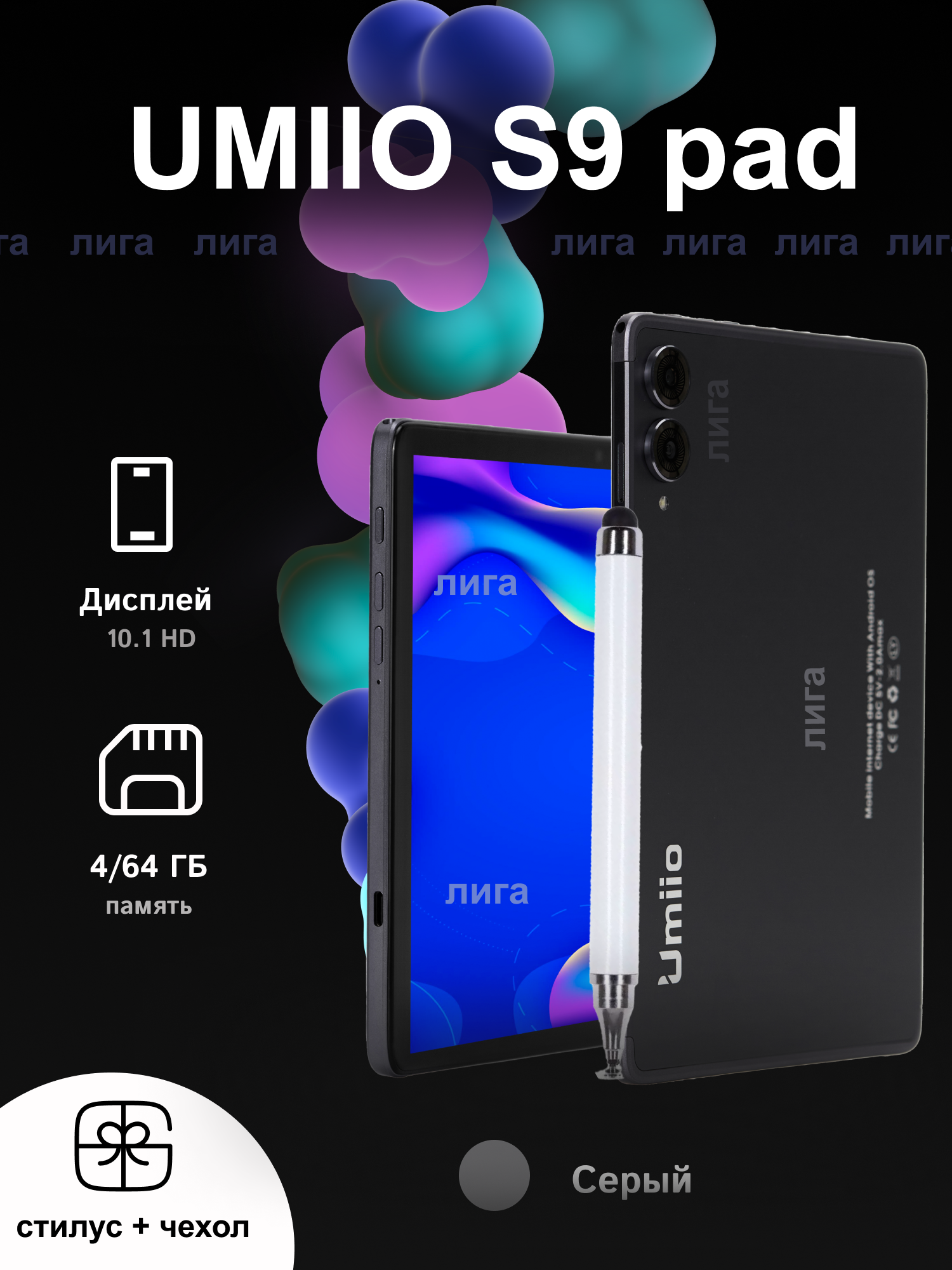 Планшет Umiio S9 10,1 дюйма, 6 ГБ/128 ГБ, Android 12, серый со стилусом интересное: