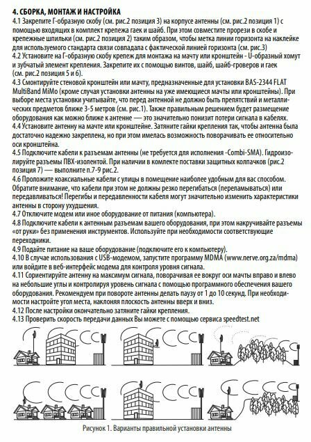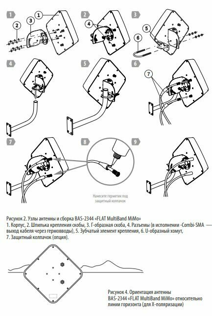 | Комплектация | антенна BAS-2344 «FLAT MultiBand MiMo», узел крепления на мачту, комплект крепежа, паспорт, гарантийный талон, упаковка |