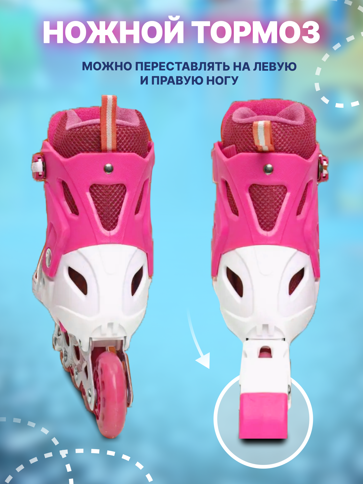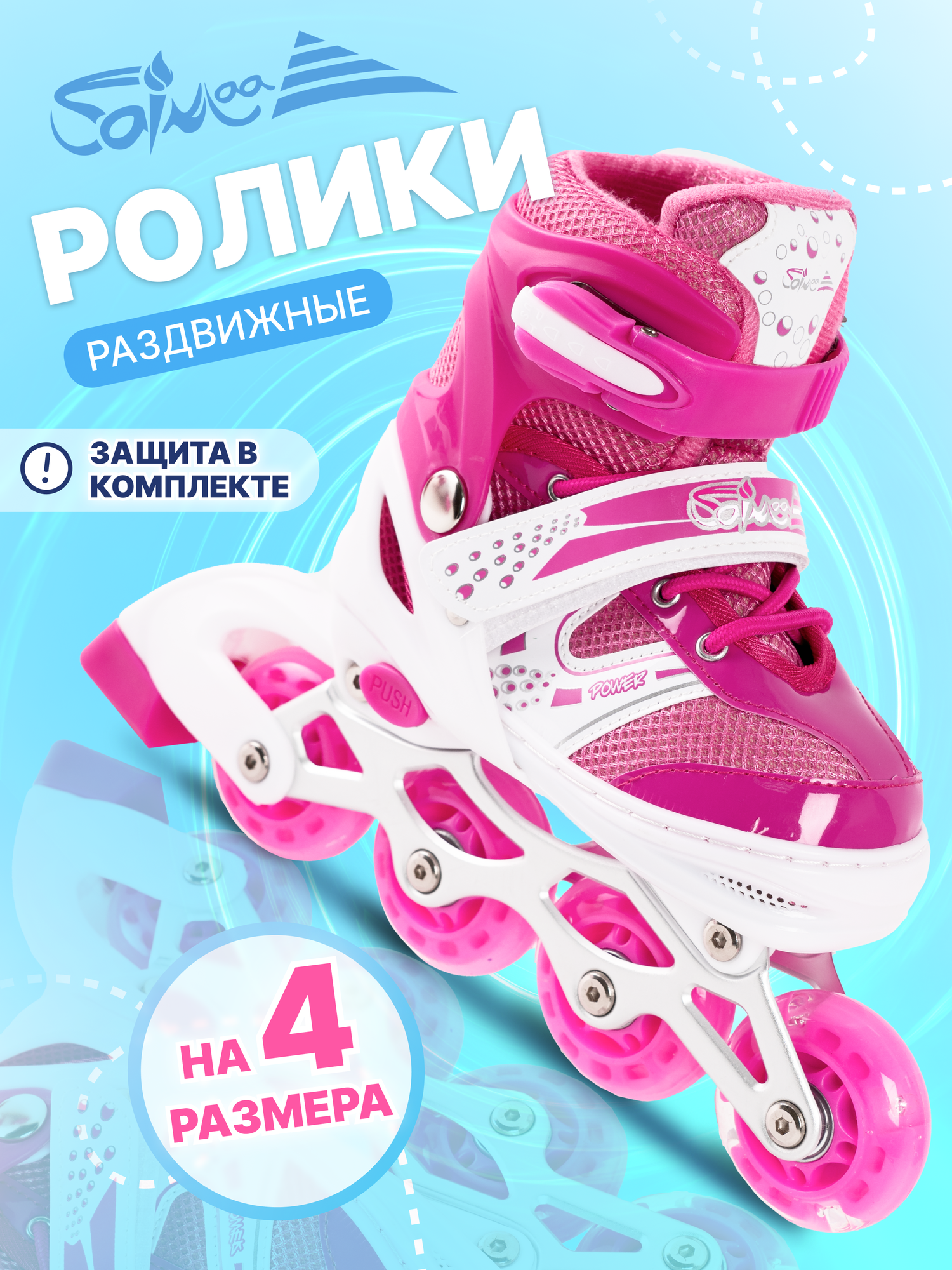 Роликовые коньки раздвижные детские, M (35-38), цвет розовый, комплект защиты в наборе