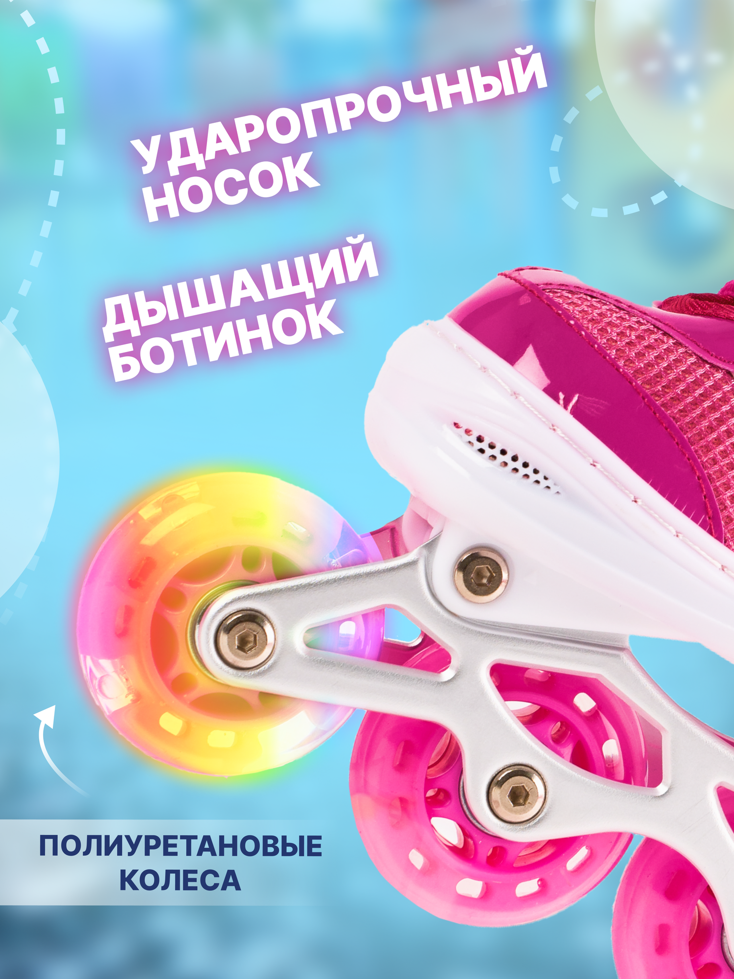 Роликовые коньки с защитой раздвижные детские, S (31-34) цвет розовый