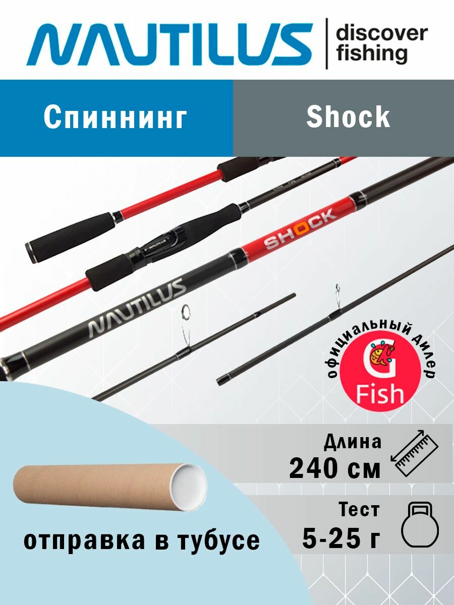 Спиннинг для рыбалки Nautilus SHOCK NSHS-802ML 2.40м 5-25гр, штекерный