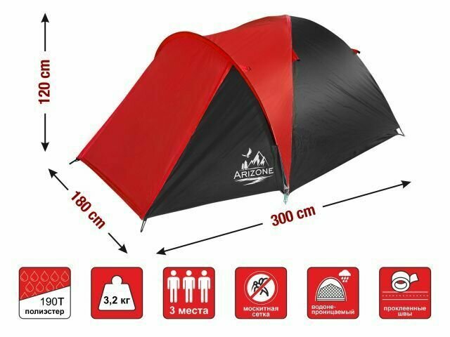 Купить Arizone Палатка Element-3 (Элемент-3), чёрно-красная, (размер: 300х180х120 см) (28-300181)