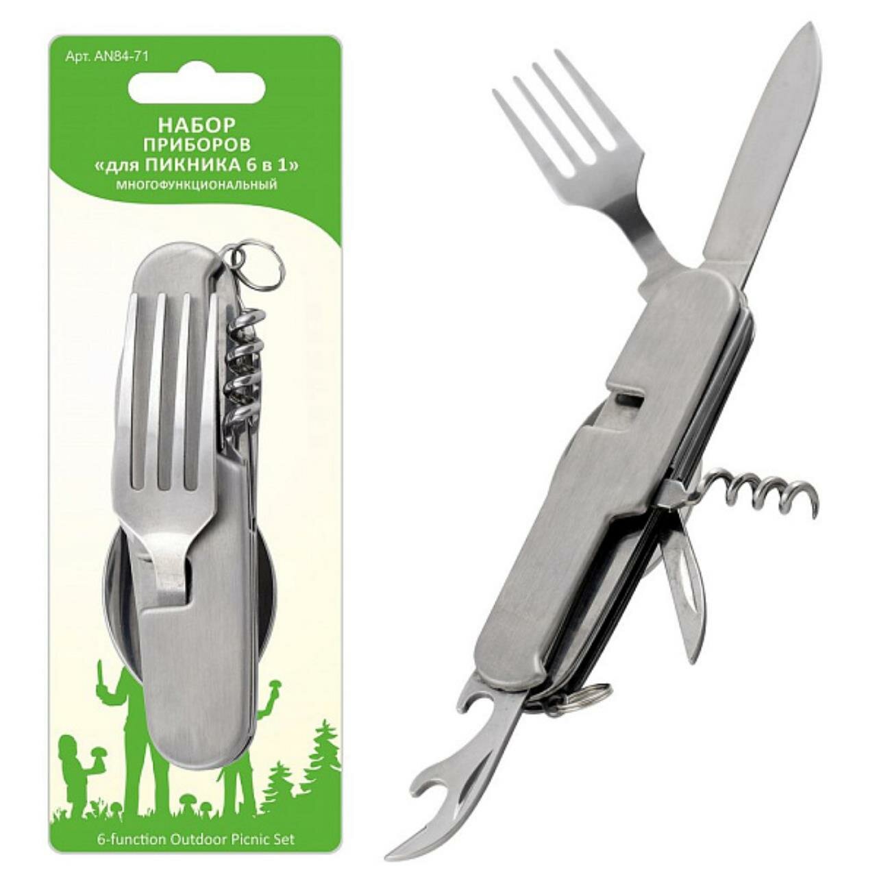 | Дополнительная информация | подробная комплектация: - нож; - ложка; - вилка; - штопор; - открывалка для бутылок; - шило.; особенности: с открывалкой, складная конструкция |