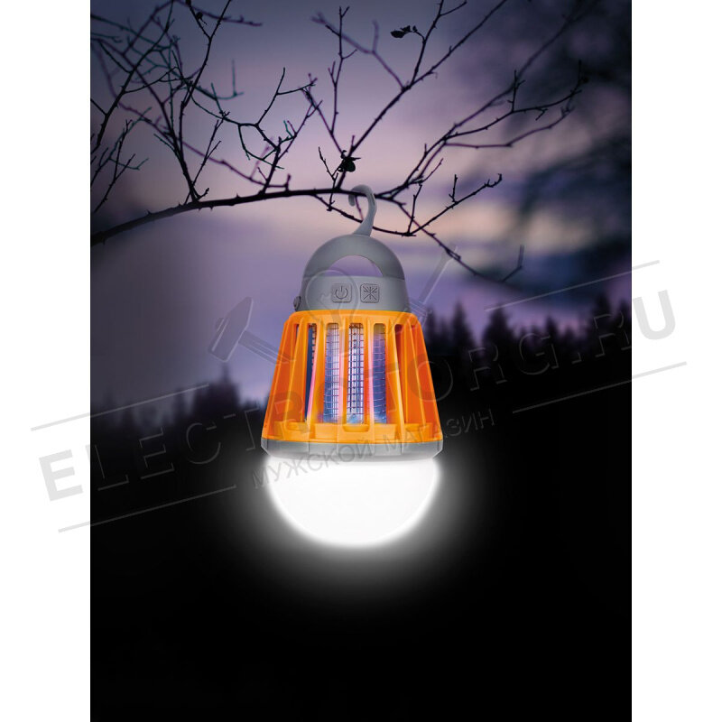 Фонарь кемпинговый антимоскитный, встр акк, Rexant, зар от сет220В, пластик, 3 режима, UV-подсветка,
