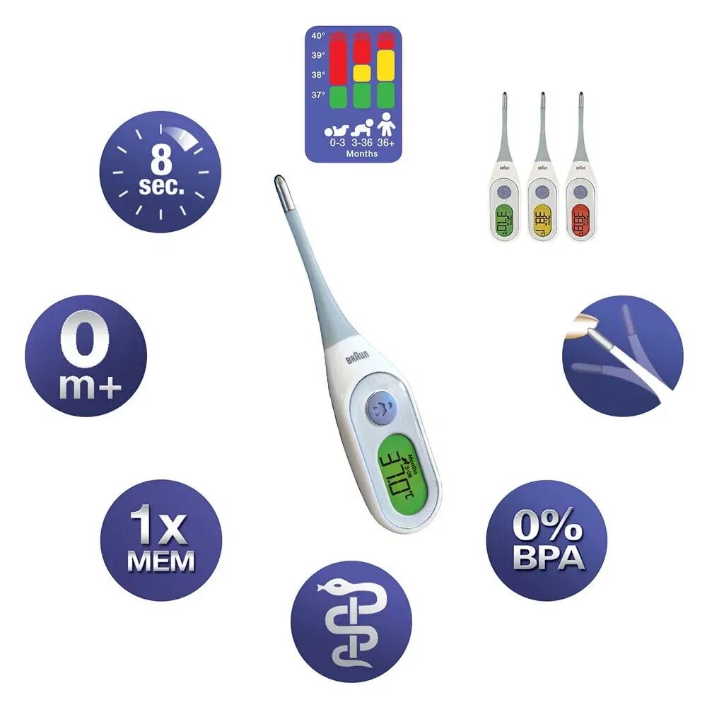 | Дополнительная информация | Удобный электронный термометр с запатентованной технологией Age Precision®, которая согласовывает результаты измерений с возрастом ребенка, что упрощает их интерпретацию. |