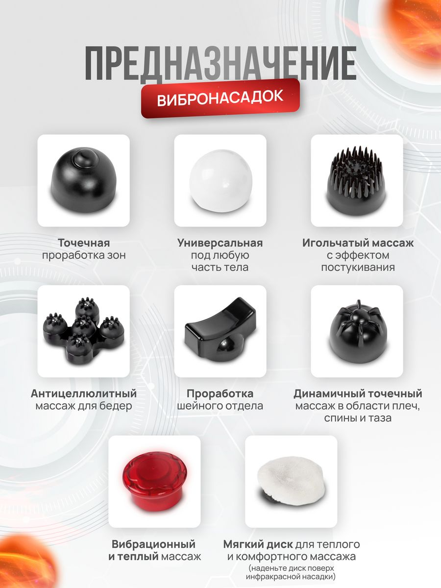 Электрический массажер для тела 6 насадок 10 скоростей 12 режимов массажа