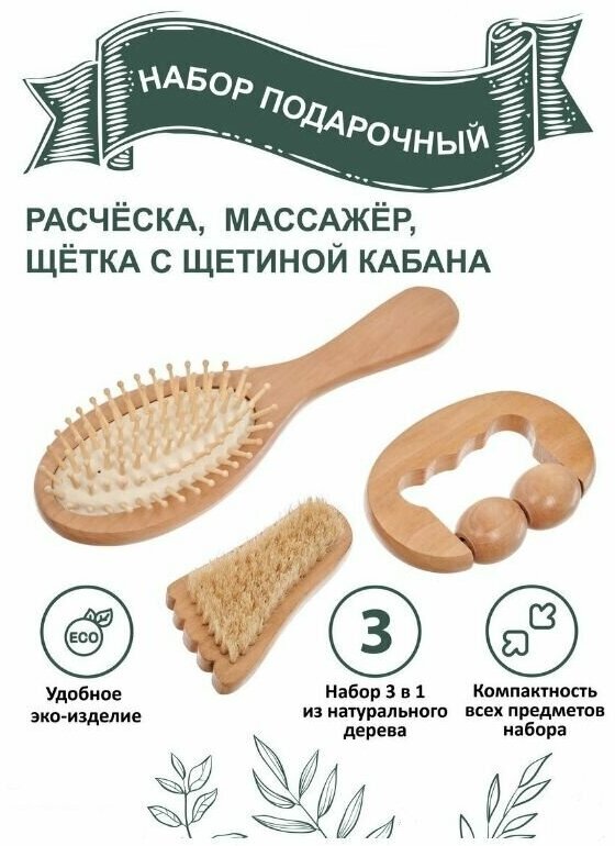 Набор расчёска+массажёр+щётка BRADEX, Gift box boar bristle 1шт интересное: