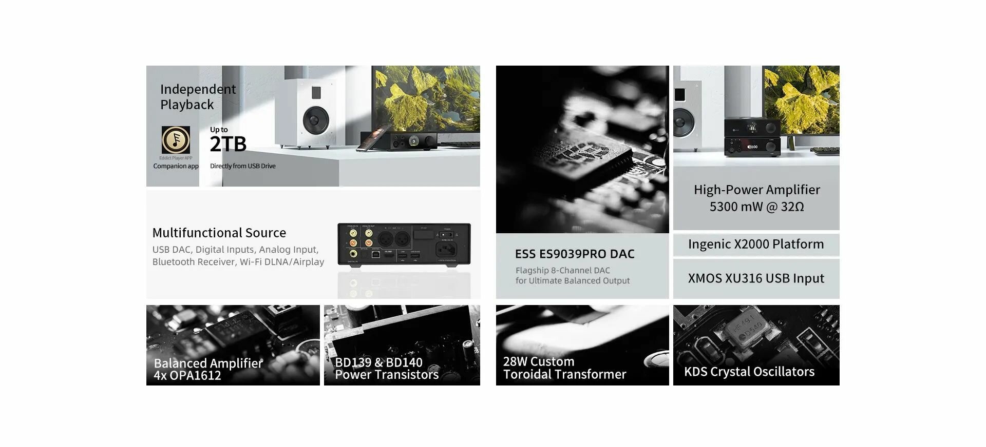 | Особенности | питание от USB, пульт ДУ, работа в режиме предусилителя |