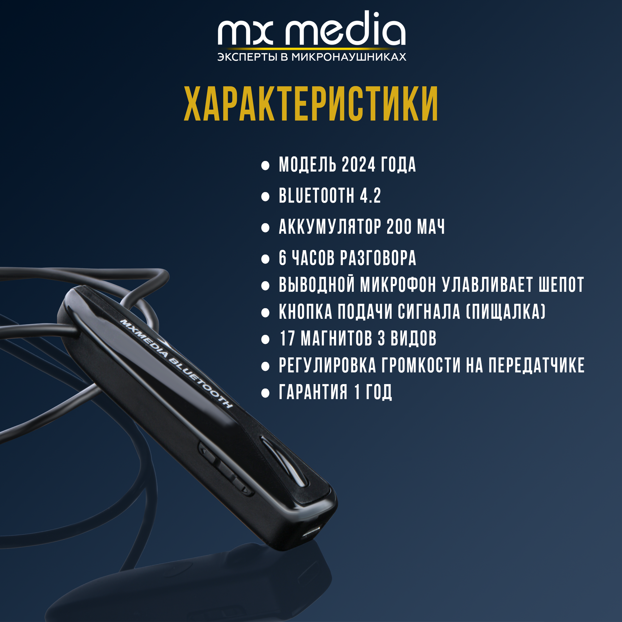 Микронаушник Mxmedia магнитный Magnet Bluetooth MAX с 2 микрофонами (встроенный и подключаемый) и кнопкой пищалкой
