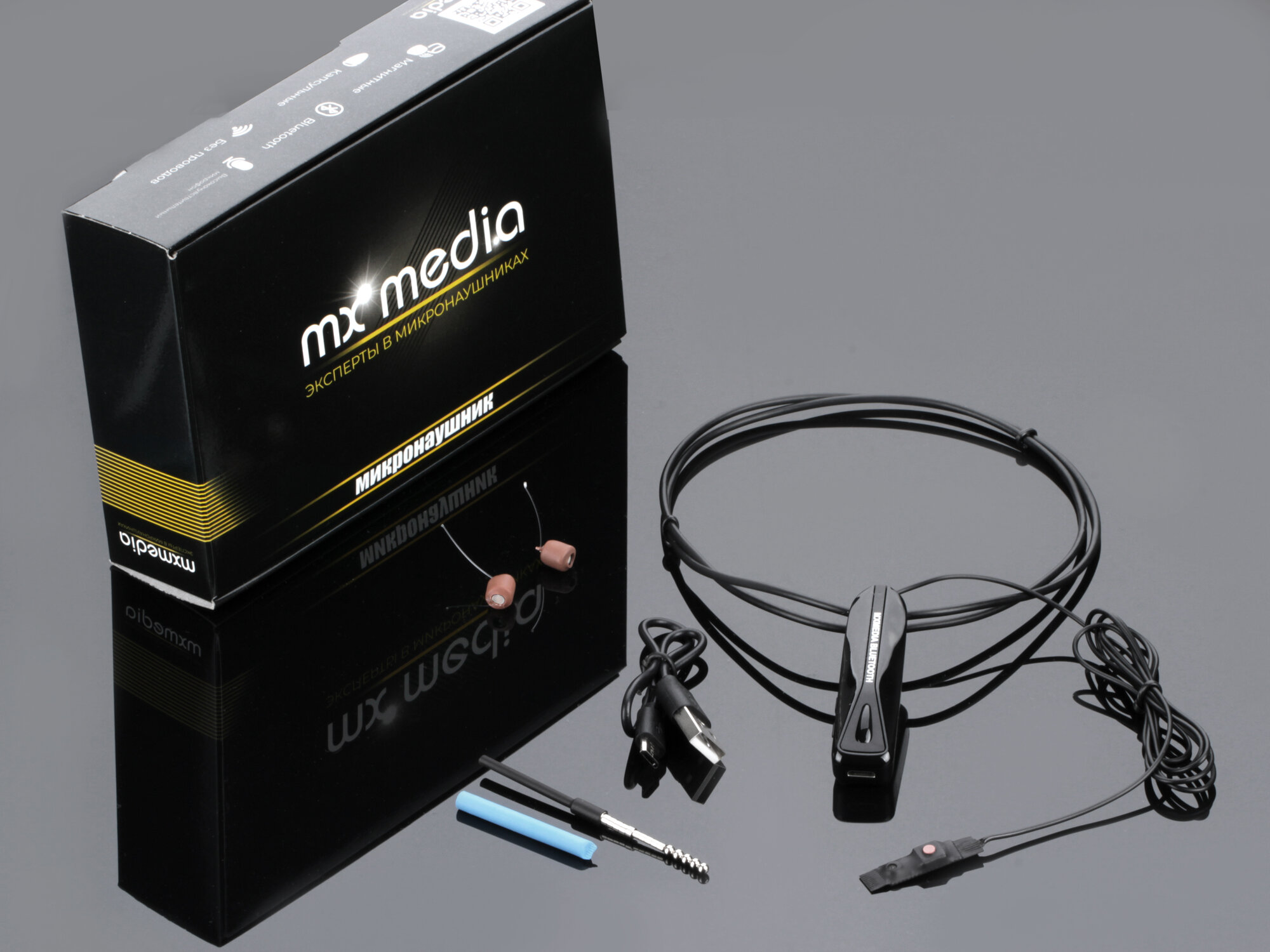 Микронаушник капсульный и магнитный Mxmedia беспроводной PowerBox MAX с 2 микрофонами (встроенный и подключаемый с кнопкой-пищалкой)