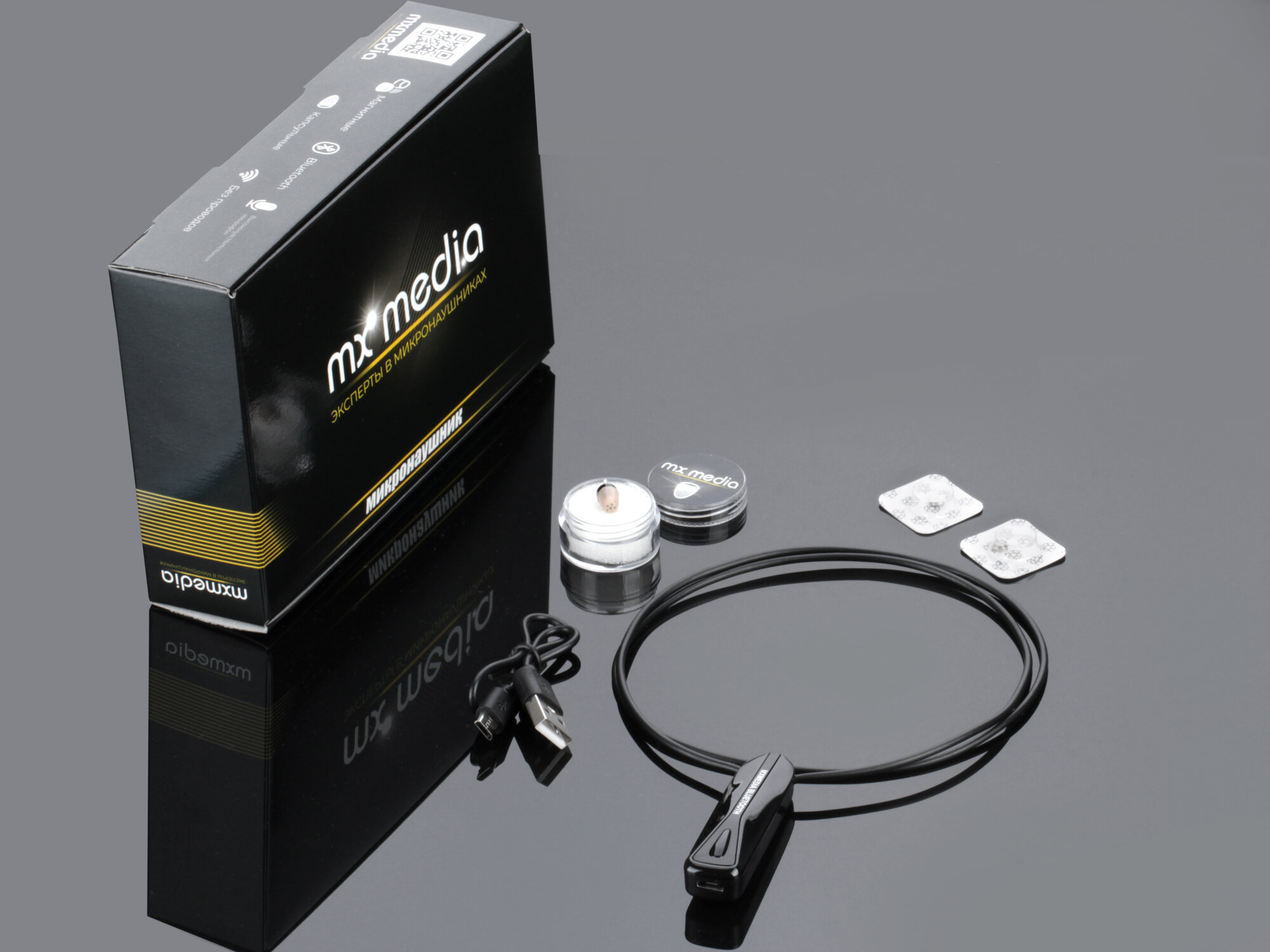 Микронаушник капсульный и магнитный Mxmedia беспроводной PowerBox MAX с 2 микрофонами (встроенный и подключаемый с кнопкой-пищалкой)