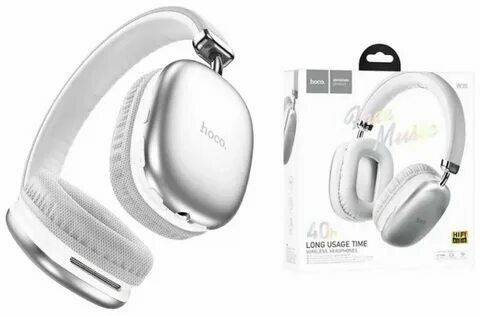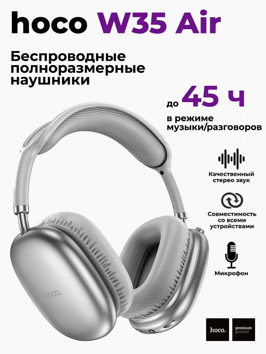 Наушники беспроводные с микрофоном hoco W35 AIR, накладные, Bluetooth, 3.5 мм, серебристый