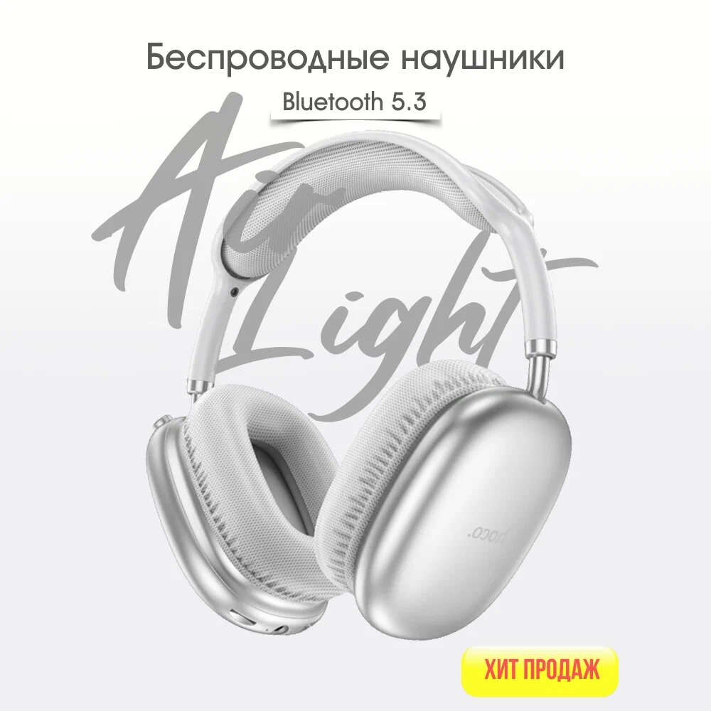 Беспроводные наушники Hoco Air Light с мягкими амбушюрами W35 Air, цвет Серебряный
