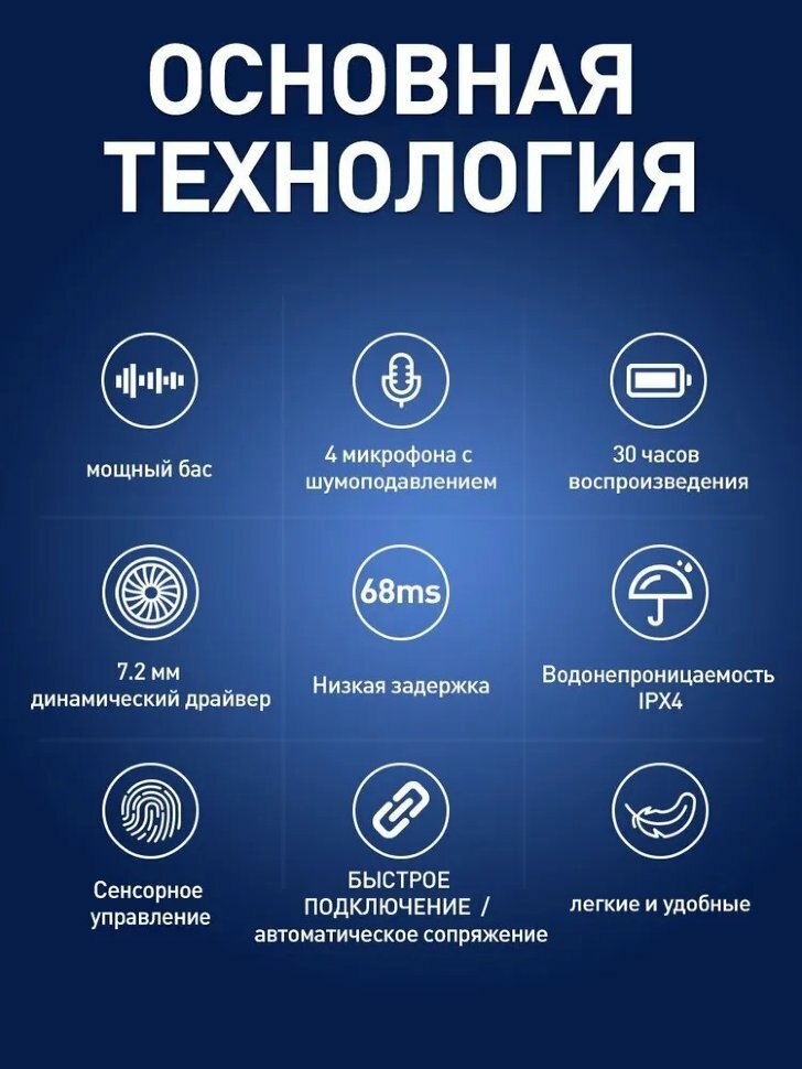 | Комплектация | Наушники, Зарядный чехол, Кабель USB, Техническая документация. |