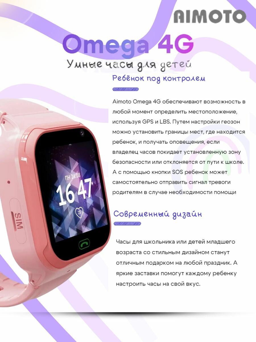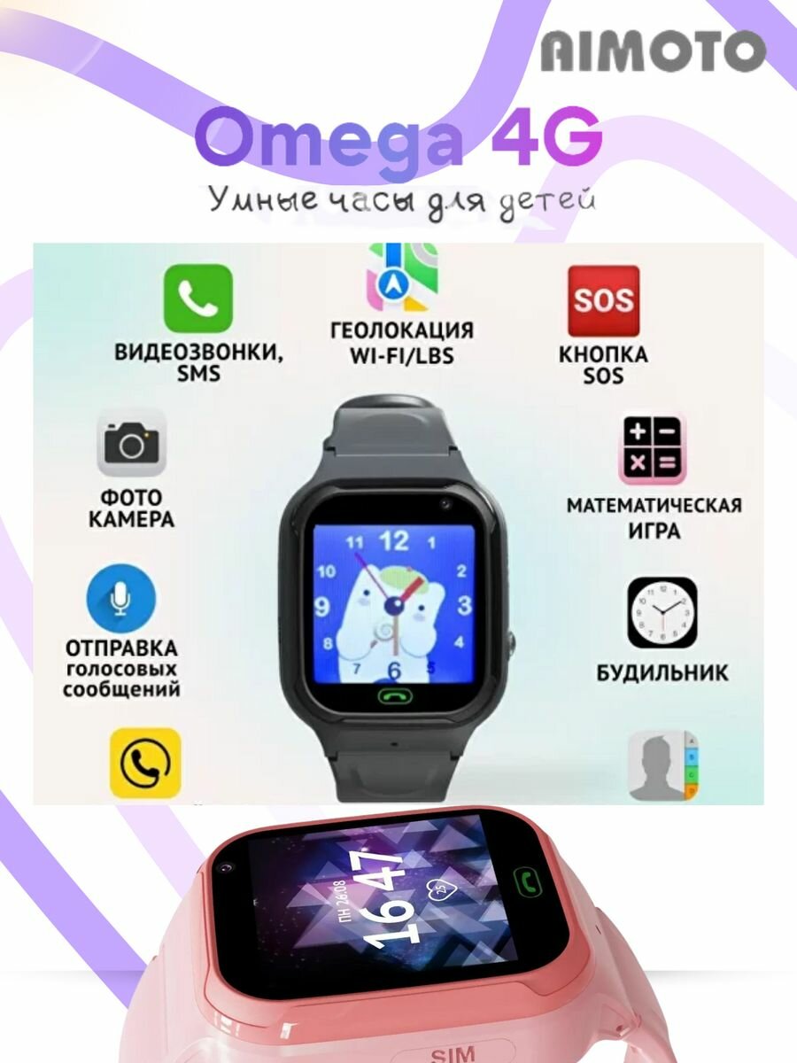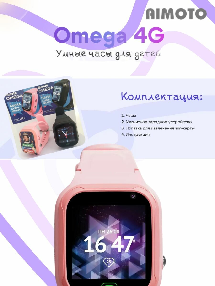 Умные часы Aimoto |кнопка жизни Omega 4G с видеозвонком. Цвет: розовый интересное: