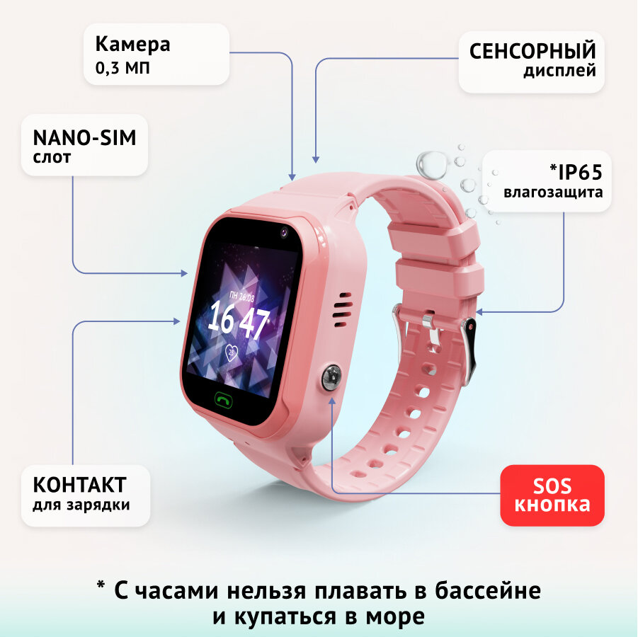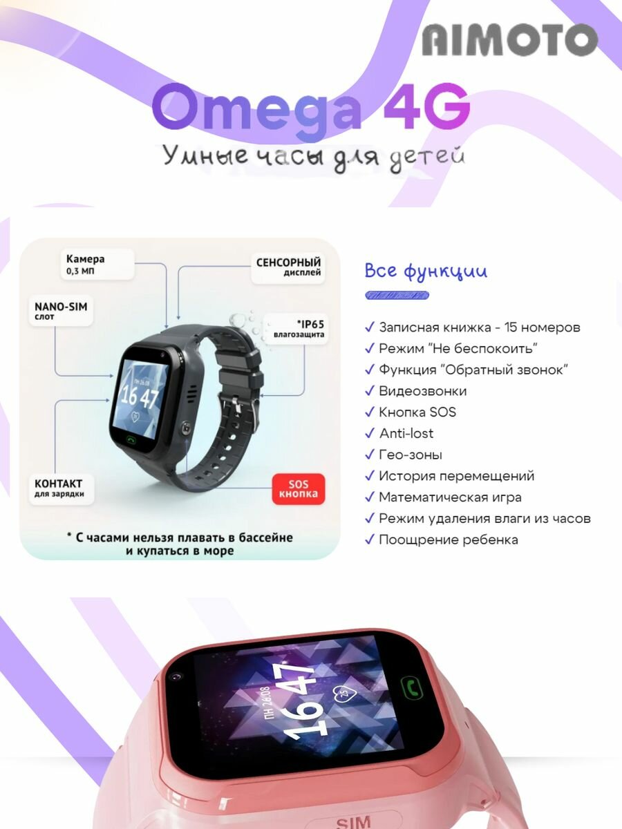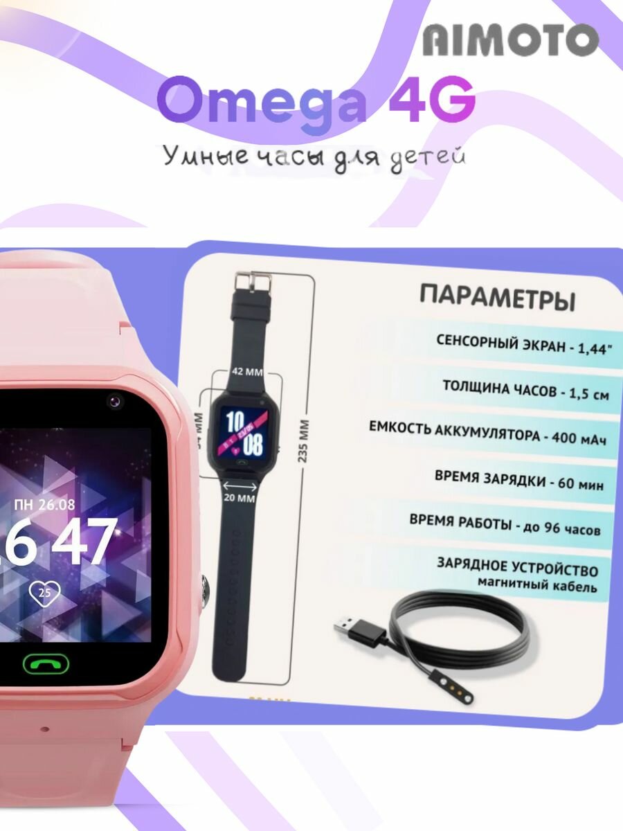 Умные часы Aimoto |кнопка жизни Omega 4G с видеозвонком. Цвет: розовый интересное: