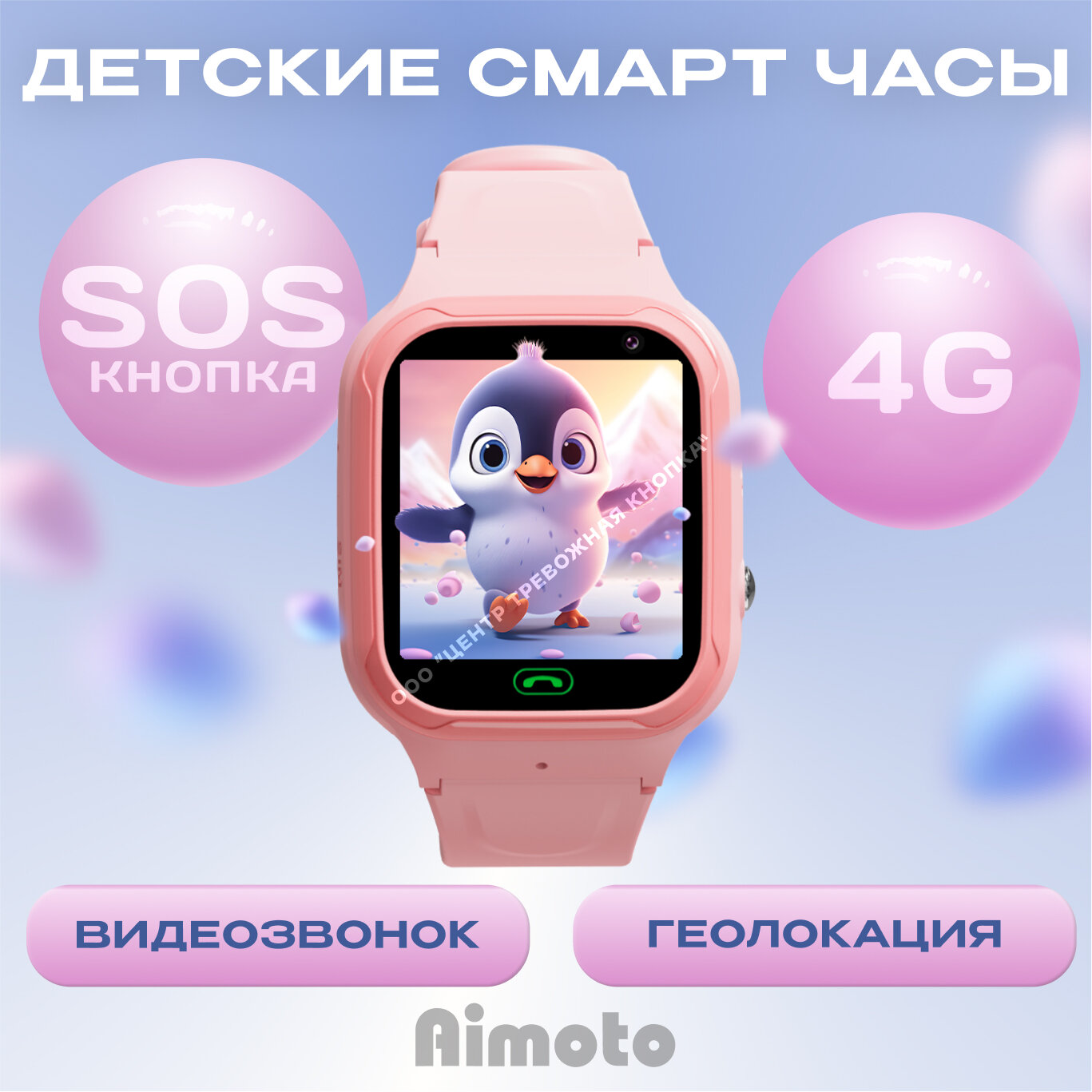 Купить Умные часы Aimoto |кнопка жизни Omega 4G с видеозвонком. Цвет: розовый
