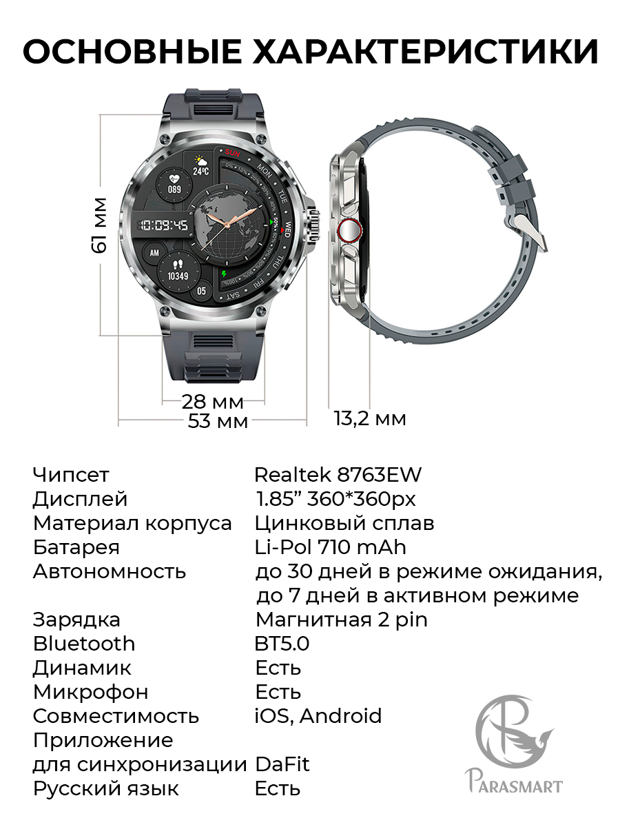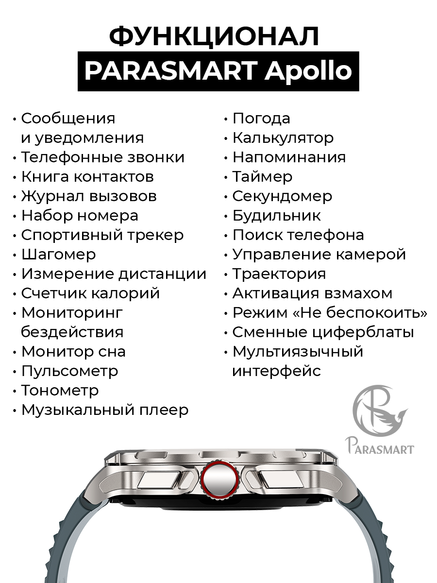 Смарт часы мужские PARASMART Apollo с функцией звонка, спортивный фитнес браслет с измерением пульса, для андроид и айфона (черный) интересное: